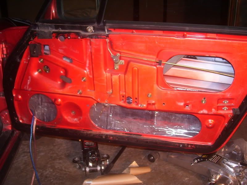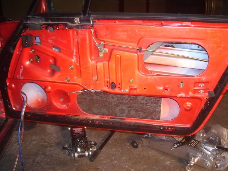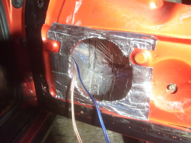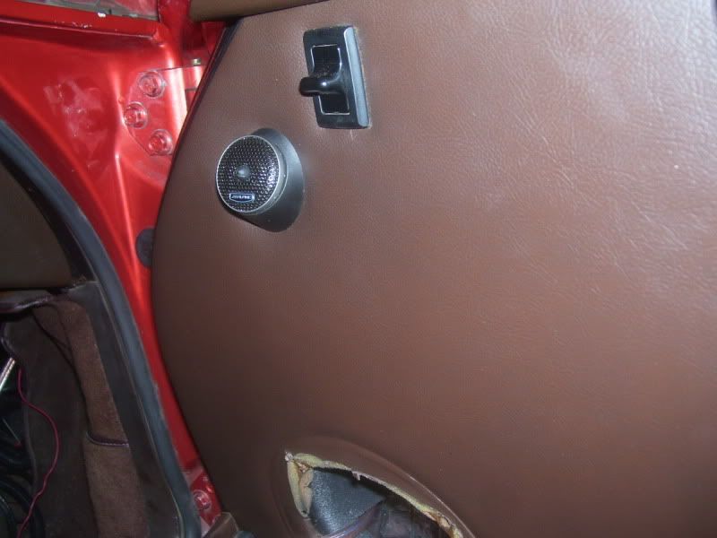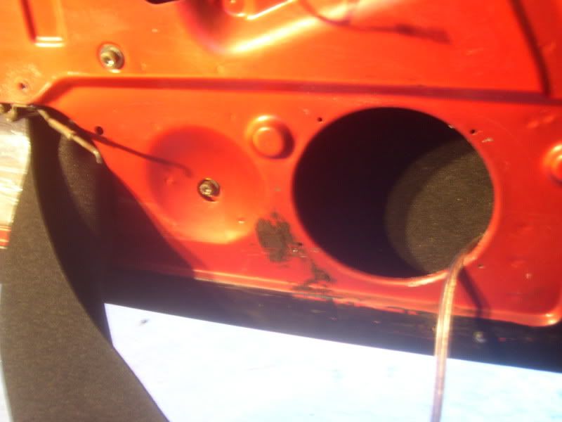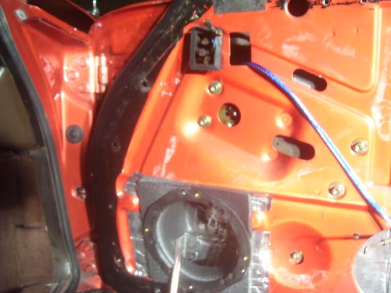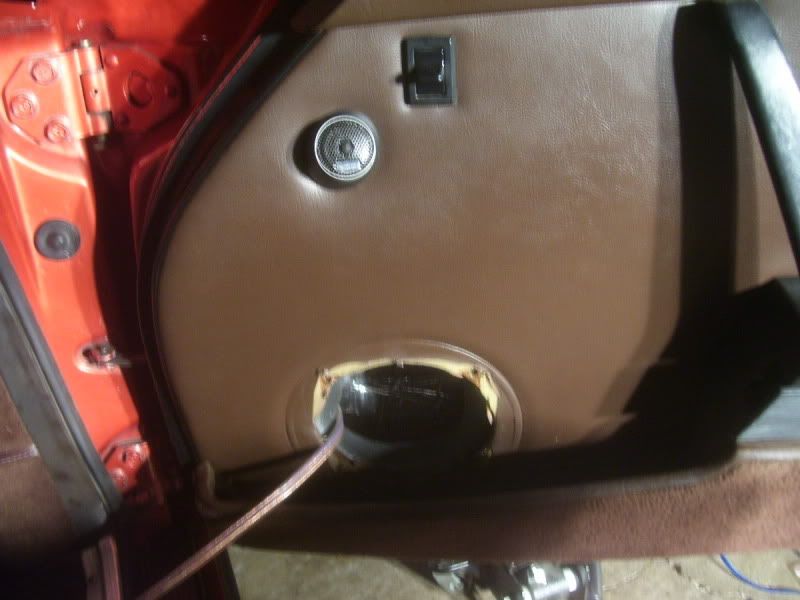 getting the new speaker wire into the door was a pain and a half. i wanted to attach it to the factory wiring and pull it through but the wire was so brittle it broke somewhere in the middle. i had to remove the plastic piece in the back of the trunk to get to the grommets on the passenger side. the wires are ran in the same place as the power window/mirror wires. i had to take the door off to get them into it, and even using a 2x4 on a floor jack to help support the door it still took me a few hours. working alone on removing, installing and lining up doors is NOT the way to do it. if you ever attempt this get a friend first.