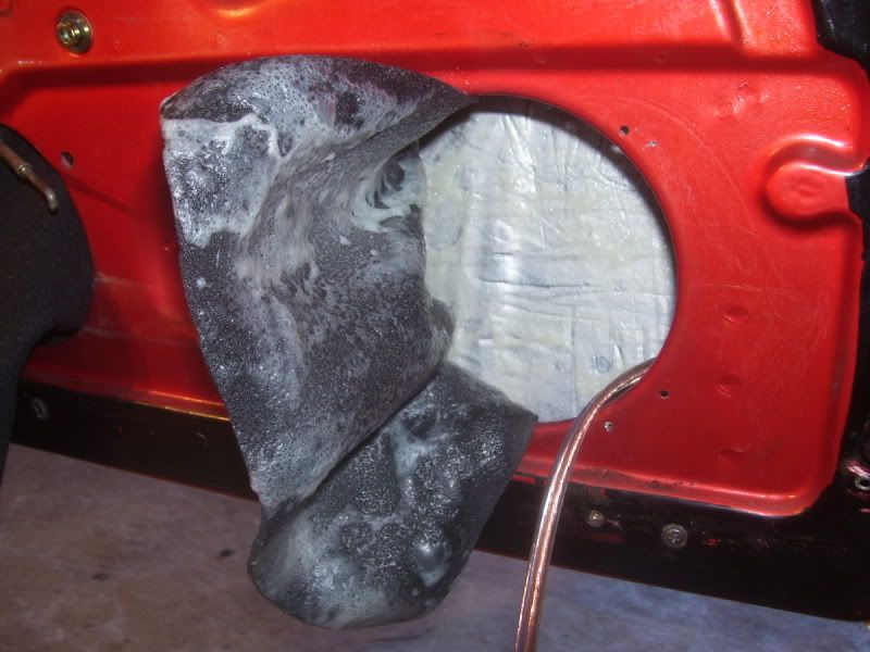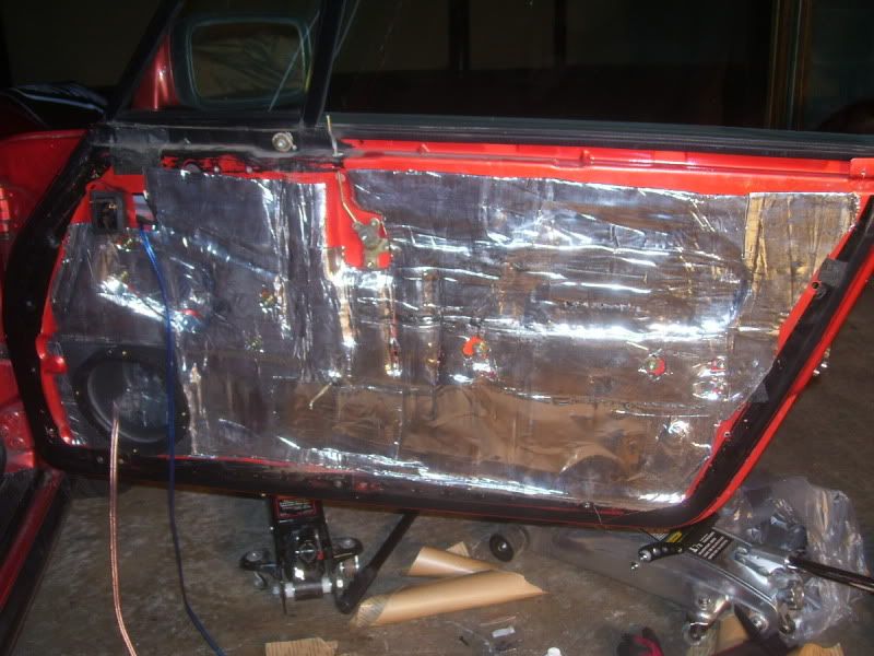 first on the list was to make a more stable holder for the door. i broke out the nail gun and some spare 2x4 pieces i keep and make a little bracket/holder for it. ![]() note the little tub of grease. it worked wonders to help with pulling the wires through the grommets. ![]() i used the same grommets as i did on the other side so nothing more to see there. i also found that with the door held up with my new tool i only had to remove the bolts from the top bracket. this gave me enough room to fish all the wires. drivers door with factory asphalt dampener ![]() stopped at my local hardware store and bought a small puddy knife / scraper. it has a nice beveled edge on the end which helped a lot with removing the old stuff. broke out the heat gun and in about 15 mins had it all gone and a nice clean surface to start from. ![]() ![]() threw down a layer of damp pro inside the door ![]() that was as far as i went tonight. i needed to keep the panel open for the overkill. i will have to trim back some of it on the passenger door (the big hole on the bottom) and remove the speaker to get it in there. i had everything bought to complete the job...until i changed my mind. oh well, just another excuse to spend more time in the garage. i kinda skipped the pics of the tweet mount and since i had nothing more to do to the door i mounted it to the panel. ![]() ![]() i am off tomorrow so i will start the day connecting and installing the amp while waiting for the overkill to arrive. hopefully by the end of the day i will have everything installed and can start to work on the sub enclosure / parcel shelf. yes, i changed my mind again and will be going with the shelf instead of the footwells.