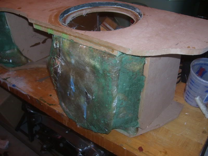 free time is at a premium but once i get started i totally lose track of time. this is as much as i can get done today, tomorrow i will work on the mounting system. i am thinking some form of a small plate that i can connect between the inner seat belt mounting bolt and then a bolt through the middle brace. i won't know for sure until the enclosure is fully cured and i can stick it back in the car.