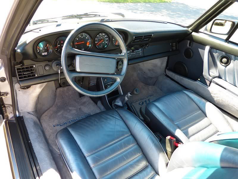 My '88 cab has a two-tone interior, which I am mostly happy with. It has champagne seats and door panels, with a black dash, console, and carpeting. The existing floor mats are black, but they're getting a bit worn, and the Porsche logo is really faded and dirty. I was thinking that a small "gift" of new mats would really spruce up the interior.