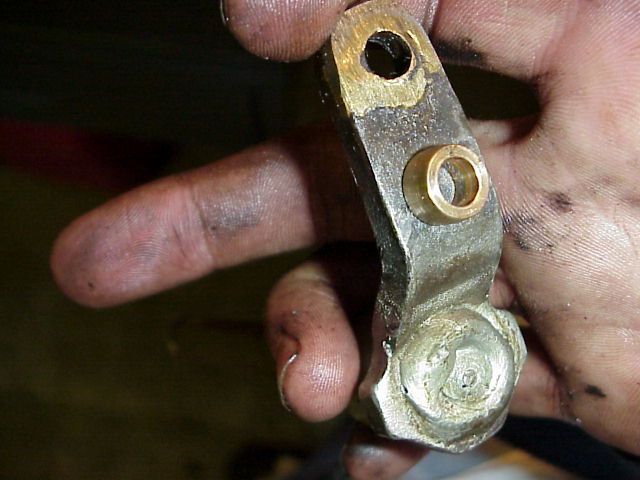 Somebody brazed-up the hole on the lever after a previous bushing wore through and the hole got egg-shaped ... doesn't look like a bad repair job, though!