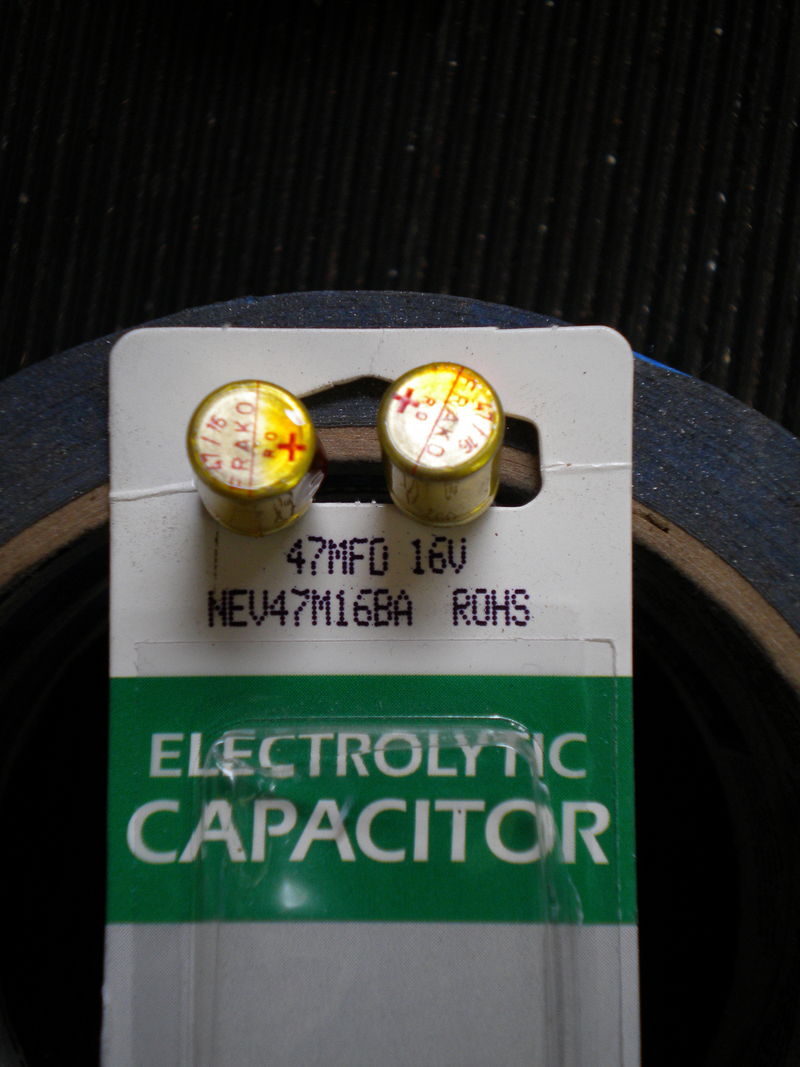 Thanks Eric PS For anyone who might care, the black stripe indicates the neg side of the cap, the other side of the circuit board has little + where the positive leg goes.