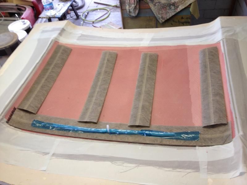 no, those strips are my resin distribution lines. As you see in the following picture, they get removed after the resin is drawn completely through the skin. The top skin doesn't need any additional support due to it's laminate structure. |