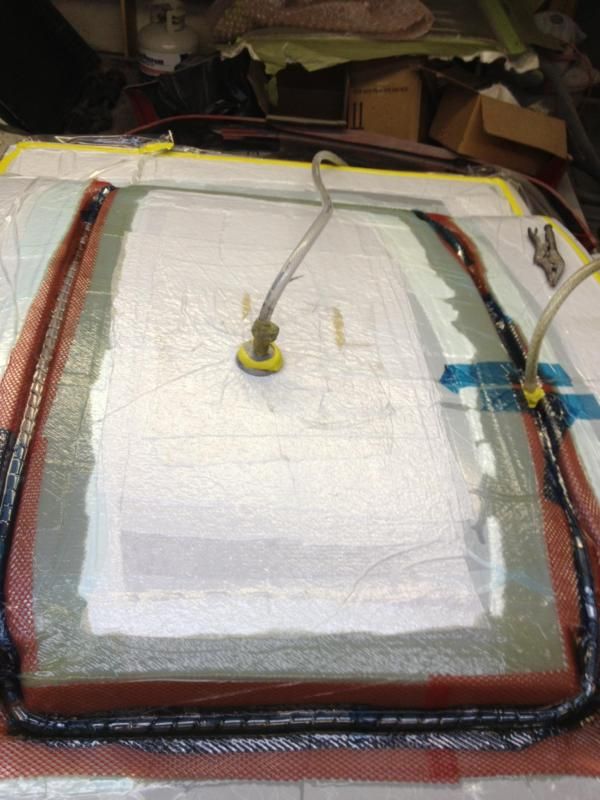 What I like about the infusion process is that we can tack all the laminate in dry, then suck it down tight to the tool ensuring no voids or bridging, then use that vacuum to pull the resin through the fabric. Very slick and a lot less messy than typical open layup/bagging. |
