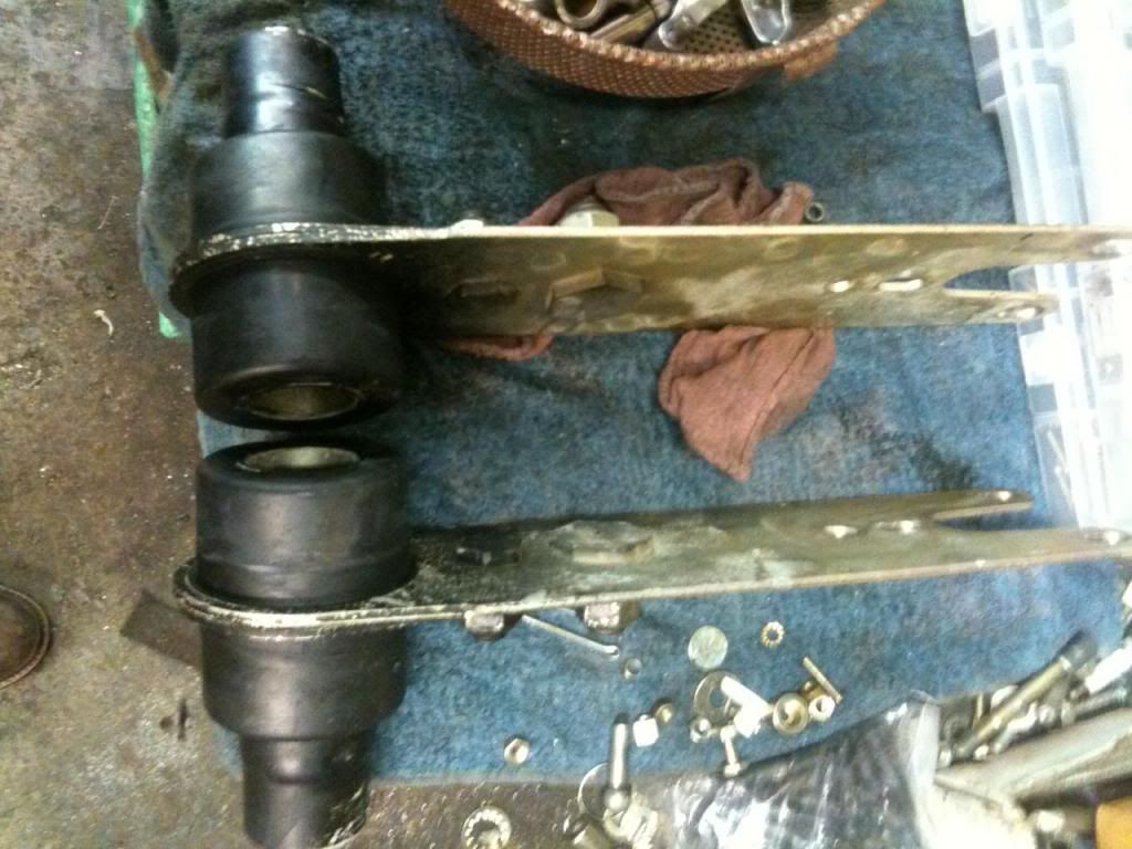 Use your existing hardware. They need new bushings. Those are shot and cold flowed.