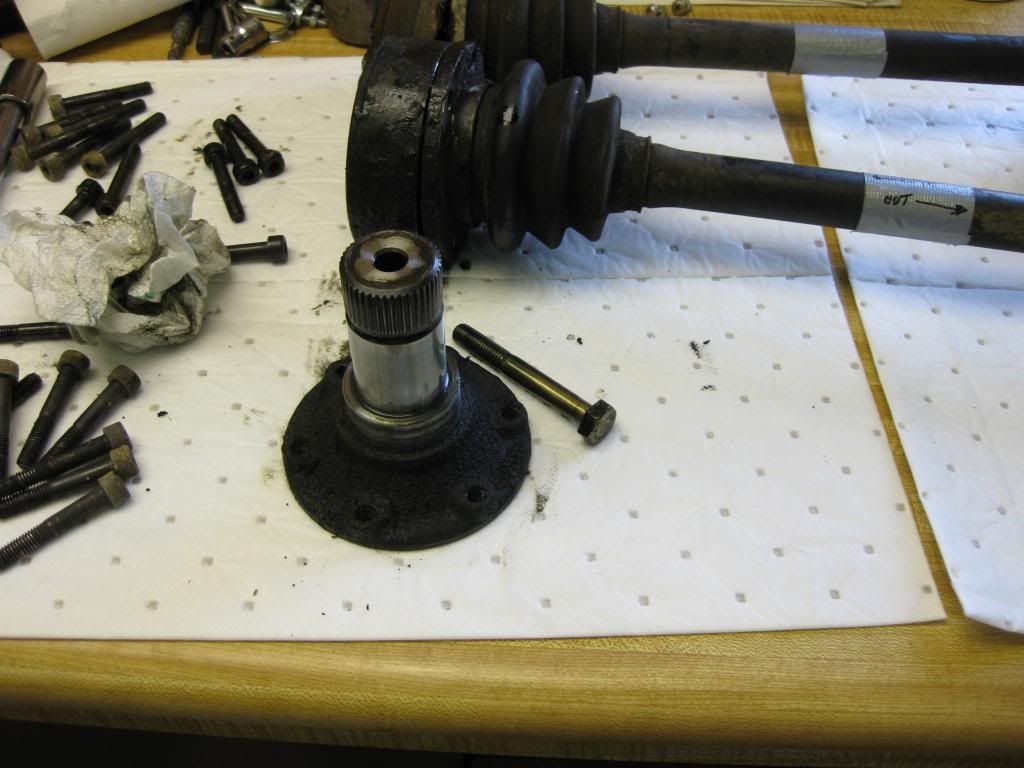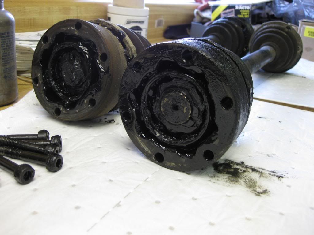 Also, no better time than the present to inspect your axle shafts. Pivot a CV joint and get a good look at the groove the ball bearing rides in. You can swipe away the grease to see the condition of the groove. Some brightness is common. However if you find flecks of metal and the groove is pitted, you'll want to plan to replace the axles in the near future. |