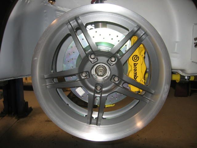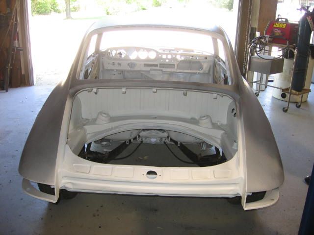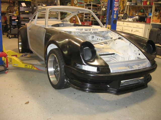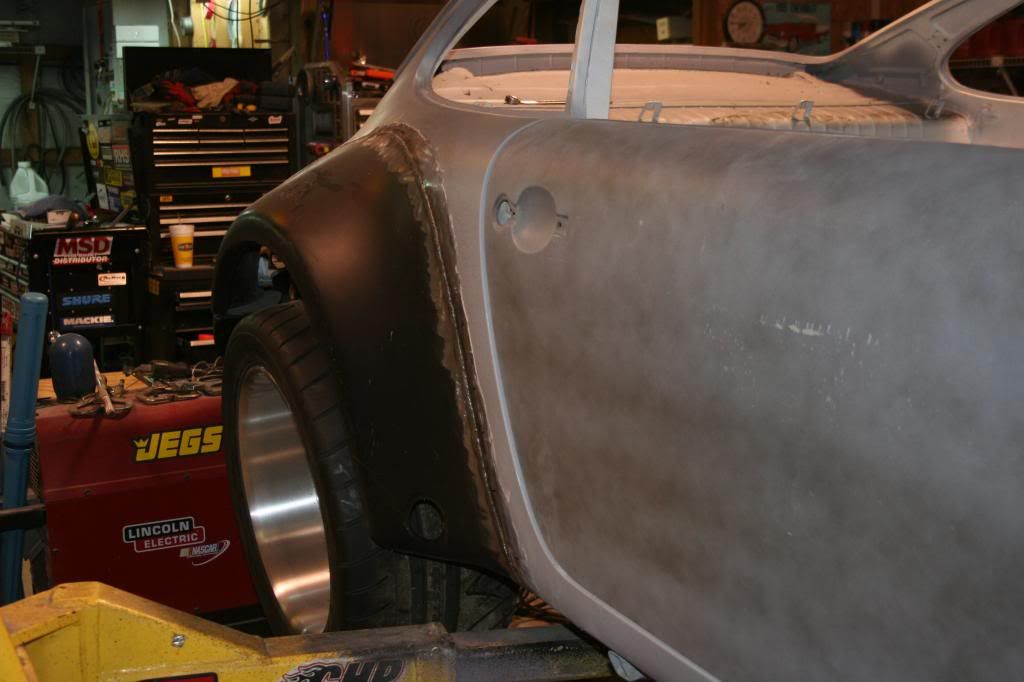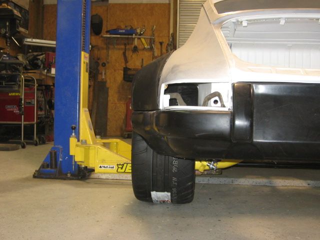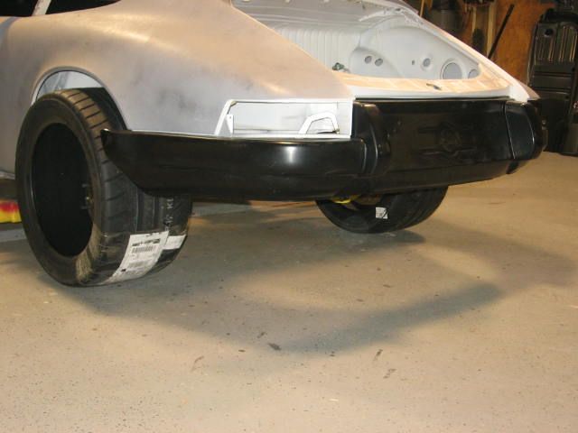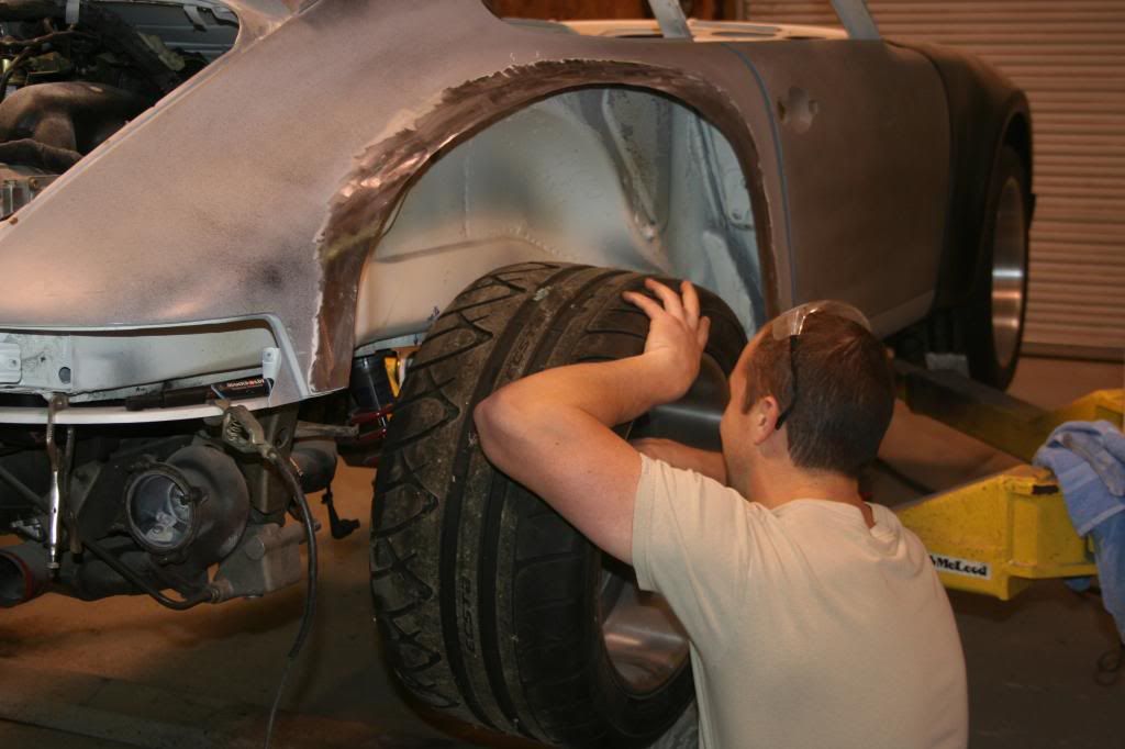 OK, now it's time to mock up the tires and wheels and other body panels. The rear flairs are steel, and all of the front end stuff is fiberglass.