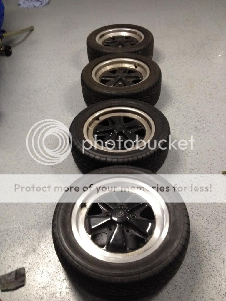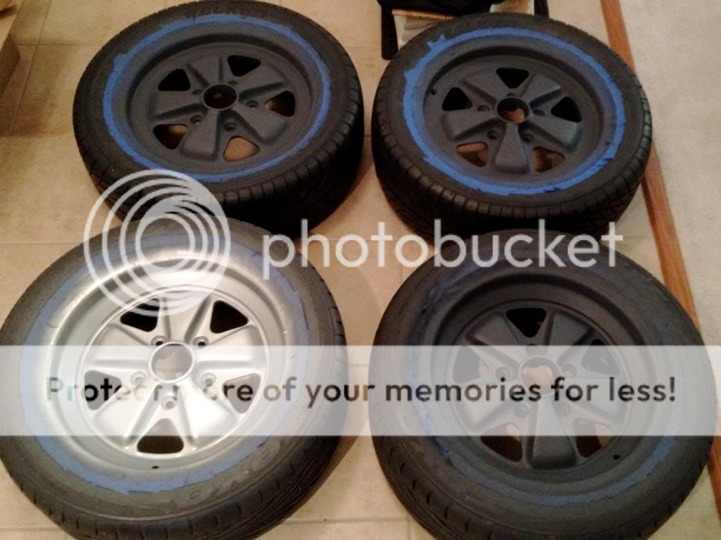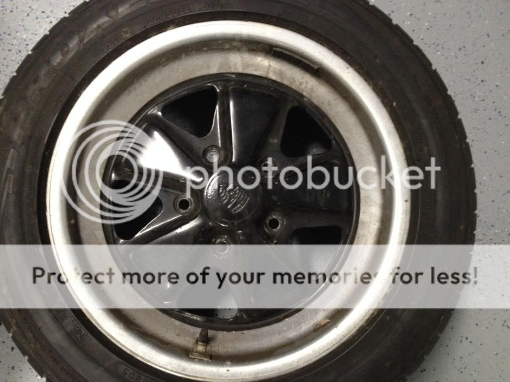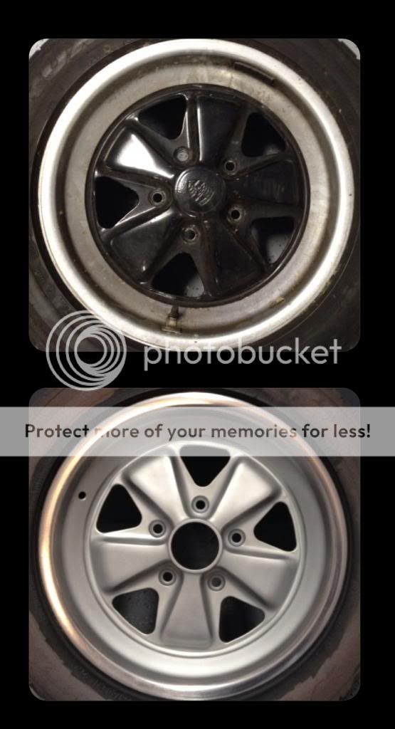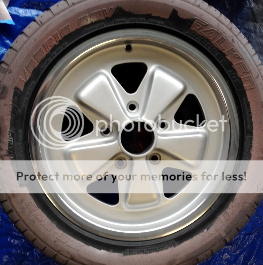 Happy holidays! I'm just wrapping up my Fuchs wheel re-finish project. I currently have 993 cup wheels on the car with summer tires; but given I'm now driving this car as my daily driver (including cold temps and some light snow), at a minimum, some proper all-seasons were due. I got some old Fuchs that were in rough shape (to say the least!). I'm pretty sure some of them are not OEM (i.e. at least two I'm sure are replicas). Nevertheless, I set out for my first wheel refinish project. My original plan was to replicate the RSR style of finish with the black background... but that proved to have numerous issues in my DIY approach. The result is I went with a silver inside with a matte clearcoat and a polished outer rim/lip. Disclaimer - I'm just a noobie that learned as I went along. I was hell bent on doing the end to end process myself. In hindsight, I would highly recommend sending the wheels out to get cleaned up / stripped, as it would make your DIY part of the process a helluva lot easier! Also, if you are a diehard perfectionist just send them out to a pro IMO. Here are some pictures from beginning to end over two weeks I spent working on these. Upfront before and after: ![]() Starting out ![]() ![]() ![]() After lots of sanding/cleaning etc. Used orbital with metal polish for final lip polishing after my hand sanding. ![]() ![]() Masking (2nd worst part aside from sanding) ![]() ![]() Primed and inside drying in the warmth ![]() My simple painting setup