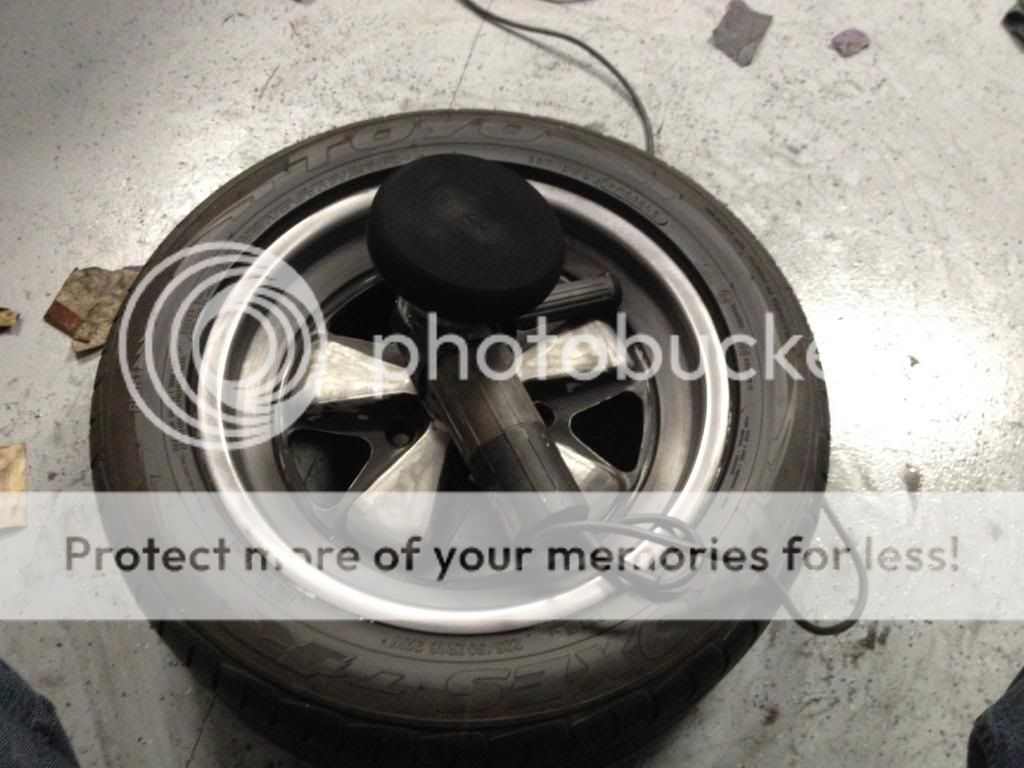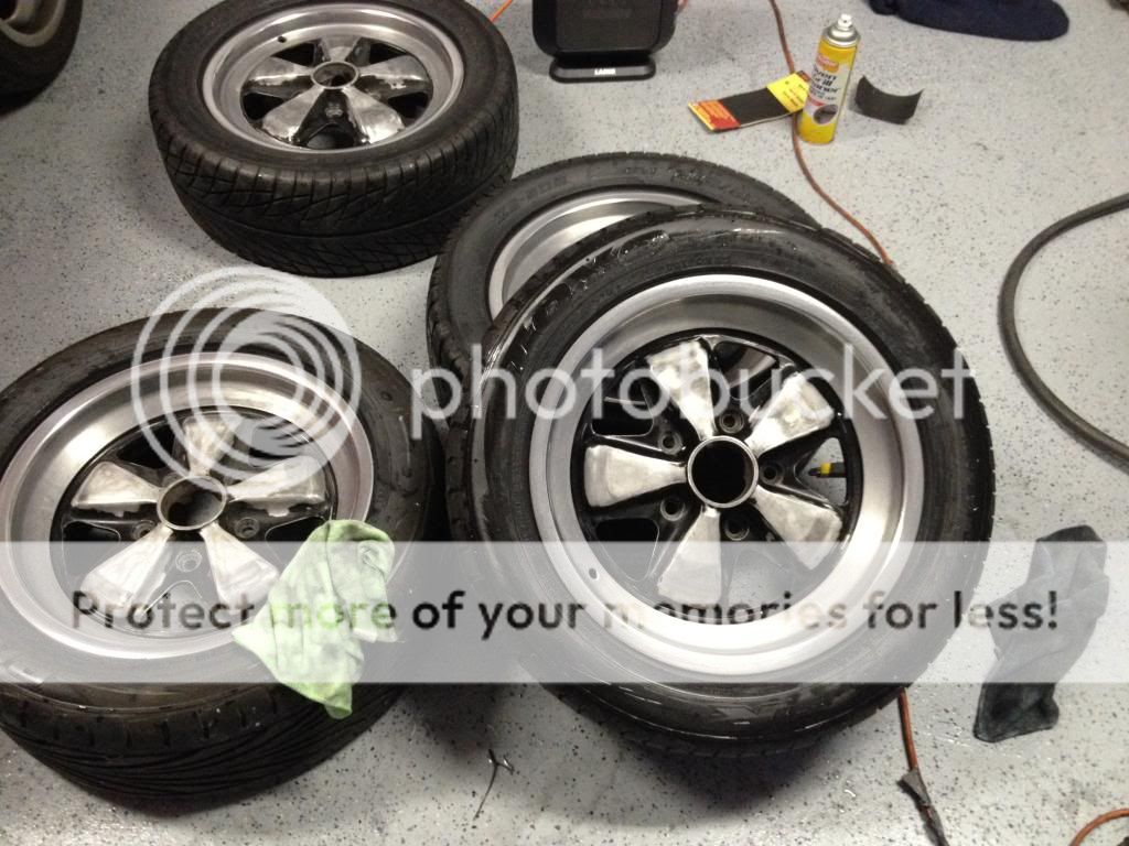 First I used a paint stripper to remove 2 layers of paint. Then oven cleaner easy off, to get the anodizing off. I'm not sure if this stuff is available in Germany. ![]() Next polishing the lips, and tape them. ![]() I painted them with rustolium satin black 7777. ![]() Painted the center caps ![]() Here is the finished wheel. ![]() Don't forget to take the dremmel tool with a little soft wire brush to remove the paint in the lug nut holes. Cheers Engelbert