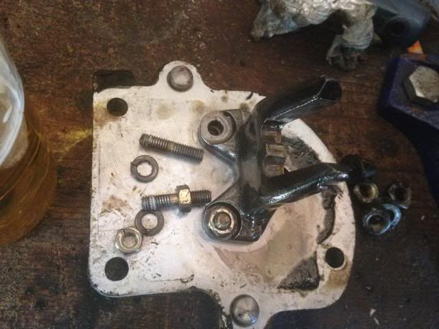 If it's that one, just put it in neutral and remove it. Be sure to have a new gasket on hand, and clean the mating surfaces of any remaining bits of the old gasket. I don't think you're gonna be able to see anything of value through that opening, but there's no harm in looking, I guess. I wouldn't remove the "finger" piece from the plate. You can see in the picture why not. Those pulled threads showing on the stud ain't pretty!