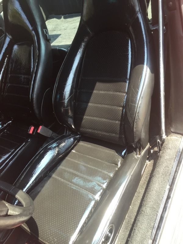 When I bought my car the seats were hard as rock....to the point it was noted on the PPI. There aren't any cracks and it's been hard to justify putting new leather in when it still looks nice. ....especially since I just spent a good chunk of change on a top end rebuild! I did my first treatment with the oil during the winter with some results. It was better than nothing and a great value at under $20. Since it's blazing hot in Texas I figured I'd give it another shot now. I purchased a tub of the LP heavy duty stuff to try as well. On Monday I put a coat of the LP on both seats and let them sit (in the garage) for two days. When I went back out there on Wednesday there were some noticeable differences...but still not the end results I wanted. I applied a coat of oil to both seats on top of whatever LP was left and left it in the garage until this morning. When I went back to the garage today they were better than before....but not good enough. I decided to move the car out into the sun to really heat things up and see what happens. I applied the LP pretty heavily to the warm leather and then brushed oil onto the areas I couldn't touch with my hands....black leather heats up quickly! I'll repot back with some end result pictures but I'm going to go outside periodically today and apply more as needed. It's amazing how quickly this stuff soaks in. Car baking in the sun with a sunshield covering the dash and towel covering the rear deck....those areas don't need the extra heat! ![]() How the seats look coated: ![]() ![]() Driver's side outer seat bolster after about 45 minutes. The area is almost dry and noticeably softer: ![]() Took the top off to allow more sun/heat in. I noticed this stuff accumulates in the lower seat seams between the bolsters. I didn't apply enough to soak the foam but you want to be cognizant of this when applying. It's a waste of oil and likely an area where the foam will get wet if it sits too long. ![]() Last edited by Scbrindley; 08-28-2015 at 09:25 AM.. Reason: added another picture |