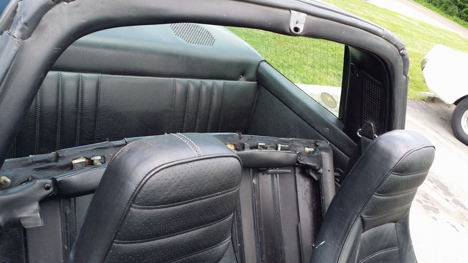 I had the problem of scuffing before from the top's corners which are sort of sharp, but now with no rear deck it was even more alarming looking, so I splurged on a $2.00 bungee (31 inches long) from the local NAPA store. My first attempt was rather ill fated, could not retract the front seat belts. ![]() The below works, but now I'm starting to worry that over time it could pull the interior out, did what I could to protect things with a small rubber hose attached to the "S" hook. ![]() ![]() ![]() ![]() If anyone else has done this, and lived to regret it, please let me know ASAP.