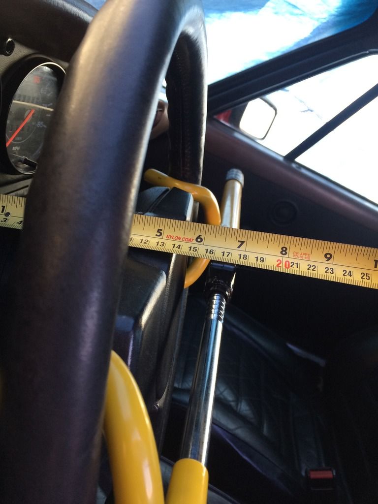 The distance from the backside of the short hub (the side facing the dash) and the outside center of the Mod 07 wheel (a straightedge laid across the wheel) is exactly 7" (177.8mm).