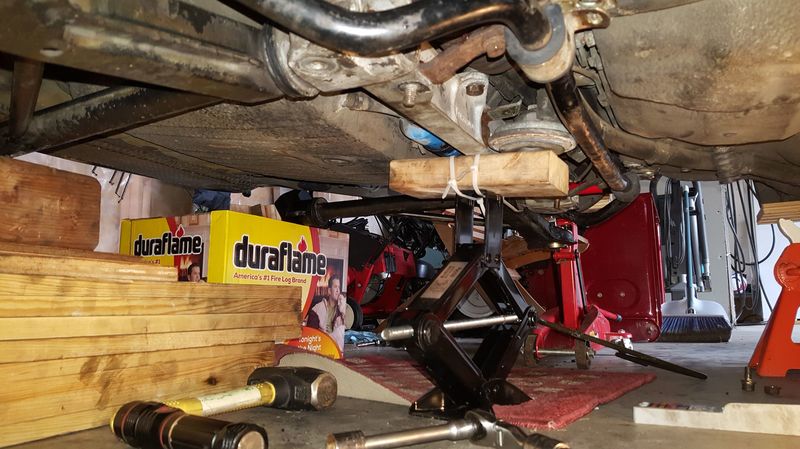 Sorry for not finishing out the thread. What I ended up doing was similar to what Ayles stated. I assembled everything on the floor, then lifted in place and loosely bolted everything up except left control arm at the front. It was just long ago that I don't remember EXACTLY the sequence of events. I think once everything else loosely installed, I was able to rotate/pry left control arm front in to position to get the bolts started. I don't think it was super challenging, as super challenging Porsche projects burn the experience in my brain. Regarding setting the angles on the brackets, I bought a digital level (Husky Brand) and it worked great. I don't think it was too expensive, and it seemed like something I may get use out of in the future anyway. Couple pics below. The one from underneath the car more or less shows what I did. Jack holding crossmember in middle, Duraflame box holding right control arm, stack of lumber holding left control arm. Hope this helps a bit. ![]()