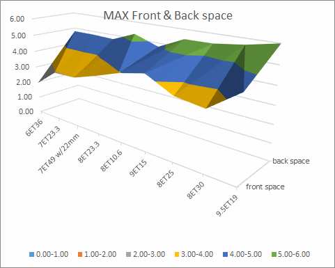 front 8 ET25 to 31, higher ET provides more fender clearance for the tires 225/45 to 235/40 rear 9 ET12 to 15, again higher ET provides more tire clearance at the fender 255/40 9.5 ET19 fits in back as well, but there is little to no leeway wrt ET, tire 255/40 to 275/35 sweet combos are 8 & 9 w/ 225/45 & 255/40, 9.5 is nice too 8 & 9.5 w/ 235/45 & 275/35 http://forums.pelicanparts.com/uploa...1494591979.gif http://forums.pelicanparts.com/uploa...1494591979.gif http://forums.pelicanparts.com/uploa...1494591979.gif the 8ET23.3 Fuchs can be fitted bin front but they aren't a happy fit and leave very little tire room at the fender, in the charts above they look to be a good fit but it's an illusion caused by the narrow lips used on Fuchs |