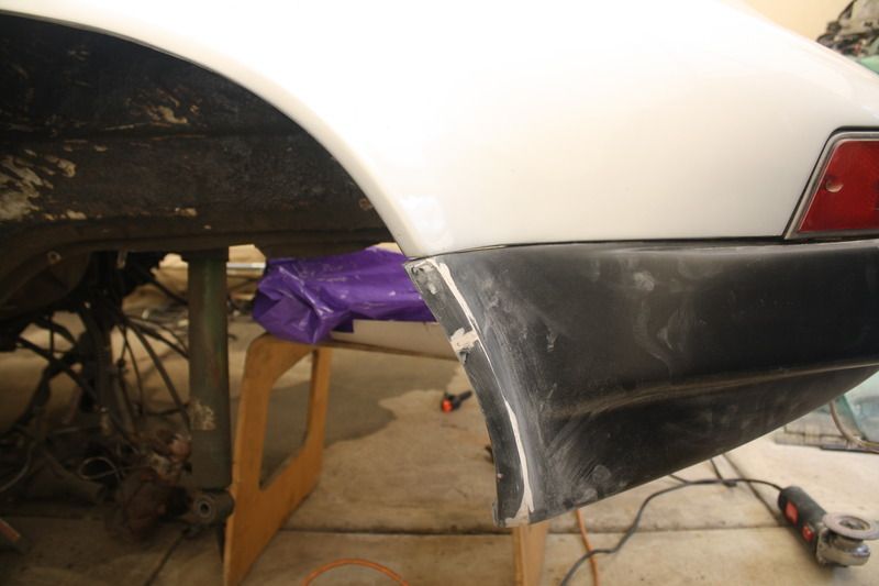 Now that the fiberglass was straight I turned my attention back to the body - filling holes and stuff. When you remove the rockers/skirts/whatever you want to call them on these cars, you're left with a quarter-size hole and a bunch of small screw holes in each side, and a lot of undercoating. I wanted smooth rockers with no undercoat, so I wire wheeled it all off, and filled the holes. You can see a couple dabs of bondo and the smooth rocker in these pics: http://i88.photobucket.com/albums/k1...ps7jayxabr.jpg (Note factory e-coat - if you strip paint on your car, I recommend not getting too aggressive and burning through this stuff.. it is great at providing protection for the metal underneath) http://i88.photobucket.com/albums/k1...psnsfngx5y.jpg I wire-wheeled, treated surface rust and blended all the nicks and scrapes in the undercoat while I was filthy. Prep for undercoat touch-up. Same deal when you get rid of the power flag mirrors - a bunch (5 per side IIRC!) of big holes. I made plugs and welded them in, skim layer of bondo over the top. Also got rid of most of that asphalt goo. Hot day and a dull, flathead screwdriver was my method. Maybe some wire wheel. Pain in the dick. Factory undercoat looked great underneath, though! http://i88.photobucket.com/albums/k1...ps7gxd5rfz.jpg http://i88.photobucket.com/albums/k1...pshny7mrck.jpg I also pulled the rest of the wiring, fuse box, and all the parking brake, brake lines, heater cables and boxes out. No damage or rust up here. Awesome. http://i88.photobucket.com/albums/k1...psjcb504jv.jpg http://i88.photobucket.com/albums/k1...psyjcs6pw5.jpg About ready for undercoat and off to paint! |