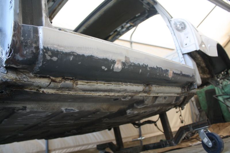 tdw - thanks for the offer, but I have a bumper :thumbup: Trakrat - The cost to have somebody who's done it before repair the rust is going to be very expensive - it is a ton of work. I'd suggest getting a welder and DIY if you have the time. Lots of work, but rewarding - plus you know it's done right! Here's what the rust looked like. If your car looks like this, know that there are around 14 panels under this all laid over one another like lasagna, and you've probably got rust in at least the top few.. http://i88.photobucket.com/albums/k1...pstly1qh4l.jpg I thought the other side was good. A magnet stuck to it, felt solid, no rust.. Started digging into it a little deeper because I had to address the rust in the rocker, anyway.. Popped some spot welds and took a peek.. http://i88.photobucket.com/albums/k1...psjjvvslzs.jpg Oh boy. You can kind of see the goo they shot in there to fill the holes back when they had the car painted in '01. Big globs of caulk or seam-sealer, maybe a little layer of bondo smeared on top, then that panel spot-welded over it all. Looked good, a magnet stuck to it, sounded solid when I tapped on it! http://i88.photobucket.com/albums/k1...psbp0xtg1s.jpg So, the fix for this (at least how I did it) is: - Cut the body panel from about halfway up the wheel arch to the door frame, then down the rocker just behind the jack tube. Cut straight, with a small blade - Drill out spot welds in the doorsill for your new removable panel - Pull it off and have a looksee. I don't have a pic of the carnage on the drivers side, but it looked like the passenger side (not quite as bad, but you know..): http://i88.photobucket.com/albums/k1...psy8yi9max.jpg So now that I knew what I was dealing with I started cleaning it up and figuring out a plan of attack. I decided to keep as much factory metal in there as a majority of it was still surprisingly solid! I cut out chunks of it here and there and thought about how I was going to need to build it up on my way back out. I tried to keep all the cuts straight because it's much easier to build new panels that fit nice when the edges are straight. http://i88.photobucket.com/albums/k1...ps5camw8bk.jpg This is that zone cleaned-up and ready for patch panels (which you can see I've been busy mocking up in white posterboard) |