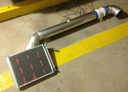 Screen was created (early during project) to protect condenser’s exposed fins. A foil mold was taken with the unit in the fender to determine what dimensions were tolerable. http://forums.pelicanparts.com/uploa...1512912231.JPG While installing screen... it looks heavy. Not in weight but in form. Am not liking this direction now. Knowing the condenser's area, a horizontal screen between the condenser and exhaust area seems a better solution. As I look at the screen sitting loosely on condenser, the question of whether to now do a fitting for a redesign comes to mind. Answer… not happening---gona move on with what’s in hand. http://forums.pelicanparts.com/uploa...1512912231.JPG Trim holds screen in place. Next… Hardware is now completed with one exception---a short section of hose is needed for the existing outlet line to reach the condenser. Not sure how to approach this. If anyone knows of a “perfect splicing” technique… please post. Otherwise I’ll go with couplings. Need to add roughly 5” length of hose. Before installing bucket and duct… will test brushless turbine connected by itself to junction in wheel well. Bypass switch was included primarily for this testing purpose. With bypass OFF, system operates when AC operates---which it does not at this stage. (There’s no refrigerant in system yet.) Will test electrical this week. |