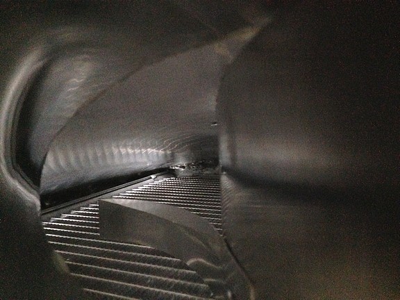 * "Cool" is based on temp of air ahead of rear wheel compared to air temps behind rear wheel. To respect all rear fender condenser systems with Spals, this project claims NO superiority to the Spal solution. Should be clear to anyone making a comparison that Spal path is actually far superior to this ducted air bucket brainfart on the basis of simplicity. Whether one system is measurably better at condensing... we'll never known---side-by-side test of both systems will most likely never happen. Pardon me for repeating project's mantra for those who know it > Reason for doing this project = exploration. Question of whether or not it's feasible to take air from ahead of the rear wheel and deliver it (with some measure of umph) to a condenser behind... that was partly the initial inspiration for all this. Now close to a final install, is safe to say "ya" to that initial question. Not distinctly asked but surly part of the initial feasibility question is the aspect of durability / maintenance. If not equal to my prior Spal system---that required minimal maintenance---I'll be putting Spal system back. We'll have the answer to that within a year... perhaps even a few months. |