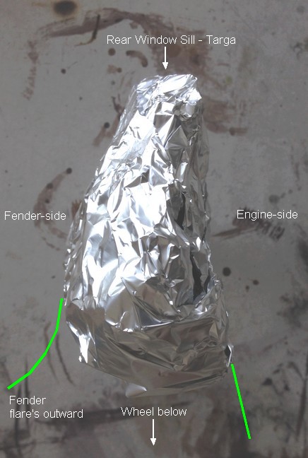 http://forums.pelicanparts.com/uploa...1502403977.JPG Hard-duct bend that transitions vertical intake to turbine-blower is locked into bend-position that was proof’d during “final fitting.” (If not “locked” into position, bendy segments rotate out of position leading to bend loosing preferred form.) http://forums.pelicanparts.com/uploa...1502403977.JPG Two reasons for insulation. 1. Turbine/motor silence (to targeted degree) 2. Thermal isolation of cooler air being pumped to air-bucket. Focus at moment is silencing. http://forums.pelicanparts.com/uploa...1502403977.JPG http://forums.pelicanparts.com/uploa...1502403977.JPG Plan is to install 2-layer insulation near turbine/motor to start with. Single layer of foam on CEET duct to end including covering air-bucket. Will bench test that set-up... first to establish good volume of air through condenser (reprogramming Arduino until preferred turbine/motor speed is achieved.) Noise level consideration follows. Foil coated fiber insul was purchased first thinking to do entire wrap using this material. Bad idea. Even if cut edges are sealed, foil skin is very delicate---look at it too long and it tears. Once foil layer is compromised… stuff is a sponge. That revelation led to getting closed cell foam... with near bullet-proof foil. (Challenge faced with insulation was ordering from USA supplier---there’s lots of China insulation sellers online. No offense to China but impatience is a factor.) Fiber'd insulation being a potential sponge requires decision: dump it, or, go extra mile to make what’s in hand work. Will go extra mile(s). Even though fiber'd insul is below foam, zero water tolerance should be tolerance. Waterproofing solution of some sort is ahead. http://forums.pelicanparts.com/uploa...1502403977.JPG Double-layered silencing insulation has turned 4” O.D. into 5”. Stack fit at 4” measure with a little clearance remaining. Will make sure 5” stack O.D. fits before moving ahead. http://forums.pelicanparts.com/uploa...1502403977.JPG Test stack. Bottom fiber insulation layer is fully in place here. Temporary top foam layer is wrapped on vertical and straight after bend---makes no sense to cover bend if thing doesn't fit. Test fit = snug. Is good news. CEET duct area Where CEET duct will position, it’s been suggested to use car’s structure as a duct. Car already offers 2 sides… enclosure side needs creating. (Idea spins off Porsche using 917’s tubular framework as oil line.) http://forums.pelicanparts.com/uploa...1502403977.JPG Foil cast is made to study crevice space above wheel. Above, looking down on cast. Below is profile view of space. Top of cast in profile view would tilt to right at top slightly to mimic actual angle of space. (Glass sill is close to being horizontal in car.) http://forums.pelicanparts.com/uploa...1502403977.JPG Decide for yourself---conclusion here is there’s necessary air-space for creating a “car duct.” After tossing idea around a bit… conclusion = PRO: car-duct would position duct as far from tire as possible. CON = making car part of “duct” means brushless turbine’s noise-energy will transmit through car to some degree. Based on this “con,” “car-duct” idea respectfully bites the dust. Am going forward with CEET duct over wheel area. Mounting plate - stack-to-car http://forums.pelicanparts.com/uploa...1502403977.JPG http://forums.pelicanparts.com/uploa...1502403977.JPG Intake stack’s mounting plate being proof’d. Tiny holes are for registration at this stage. Between car and mounting plate will be rubber fender---epoxy gel holds fender to plate… fender keeps quick-release strap clamp in position whenever stack is removed. |