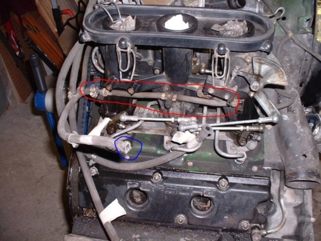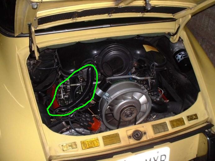 What I circled in green here is the hot air hose that runs to the MFI thermostat: