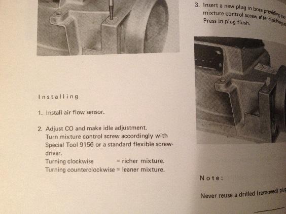 Set it around 1.0.... oxy unpluged..... Are you now talking about mixture screw or idle screw?? here is some reading where the mix screw is located. http://forums.pelicanparts.com/porsche-911-technical-forum/438195-idle-throttle-screw-setttings.html and here you most likely have this plug still in .If not you just have to adjust it .If the plug is in you have to remove the AFM unit and remove the plug to access the adjusting screw for fuel mix. http://img.pccreation.net/photos/201803031656443009.JPG |