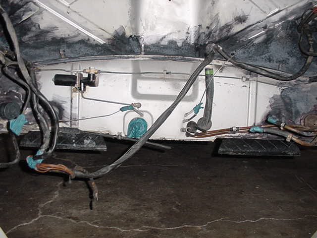 thought these pictures were timely for this thread. black is marhyde. i start with self etching primer today. local auto body supply matched paint # for silver final coat. lines/cables were shot/ questionable and i knew i would replace them. nipped them off with bolt cutters before engine drop, way easy. note how wide open the eng bay is with calbes and axels removed. more to follow as things more forward.