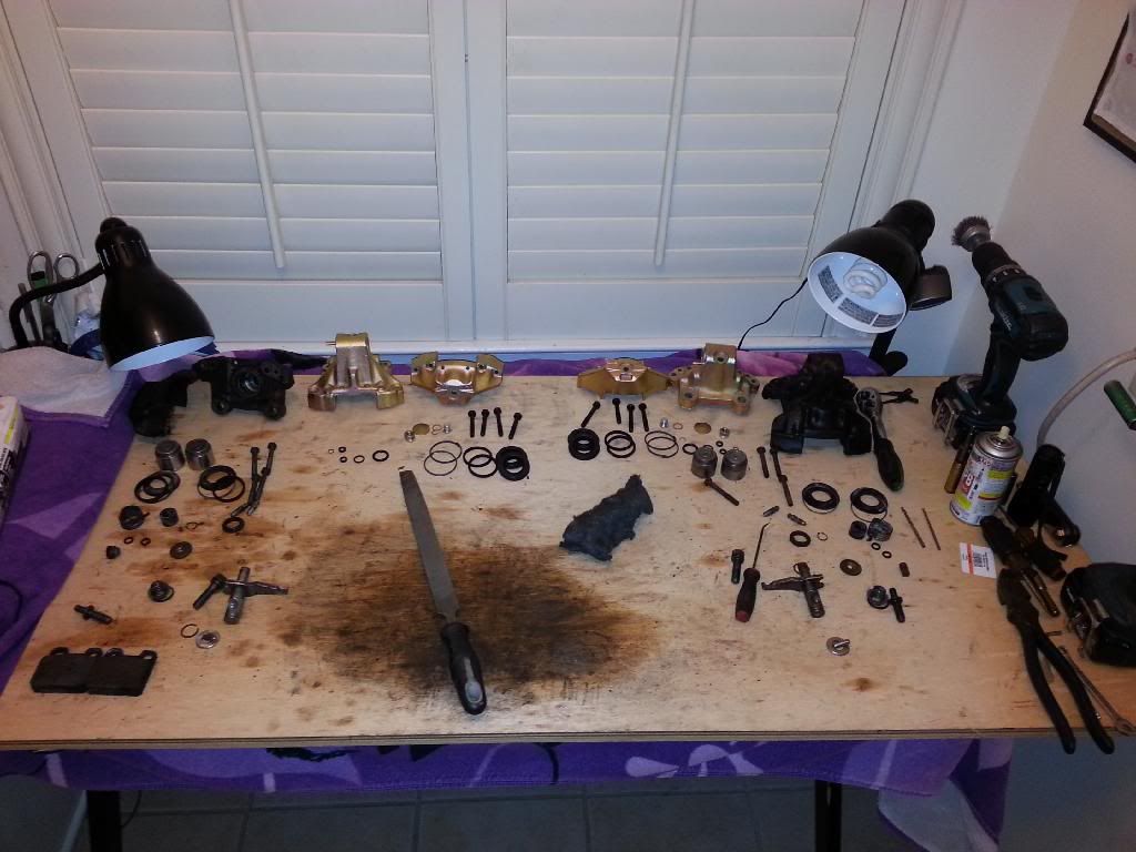 Well, I finally got around to tearing down my rear brake calipers to start the U-Do-It rebuild from PMB.