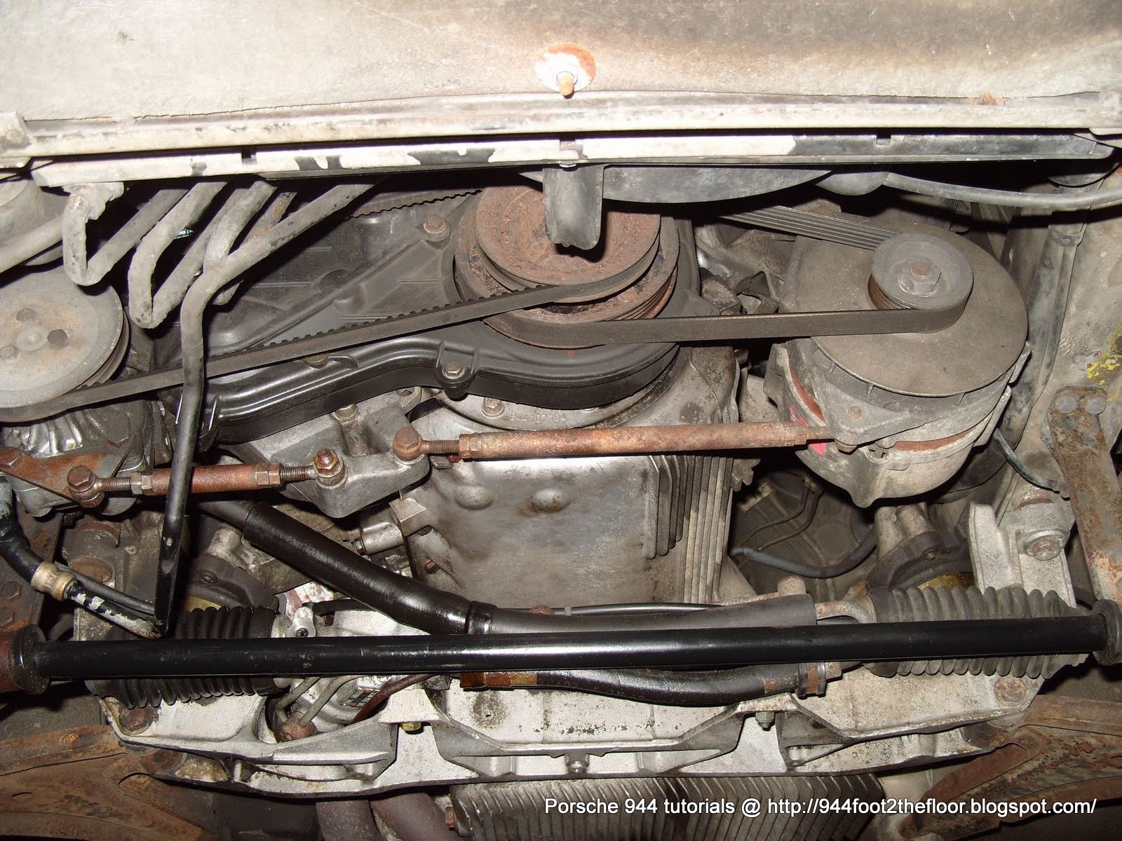 Whoops, Ernie pictured his 968, yep same compressor. There has to be a through bolt on the rear of the compressor. The head on it is 15mm and the retaining nut is 17mm, I forget the length. Although rare, the bolt can back out and vibration can cause the ear to break off. This generally happens when someone forgets to tighten things after they tension the belt.