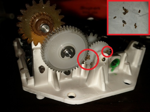 Far left gear was replaced to do stripped teeth. ![]() Lubricated the gears with instrument oil. As far as number of teeth.... I never counted.