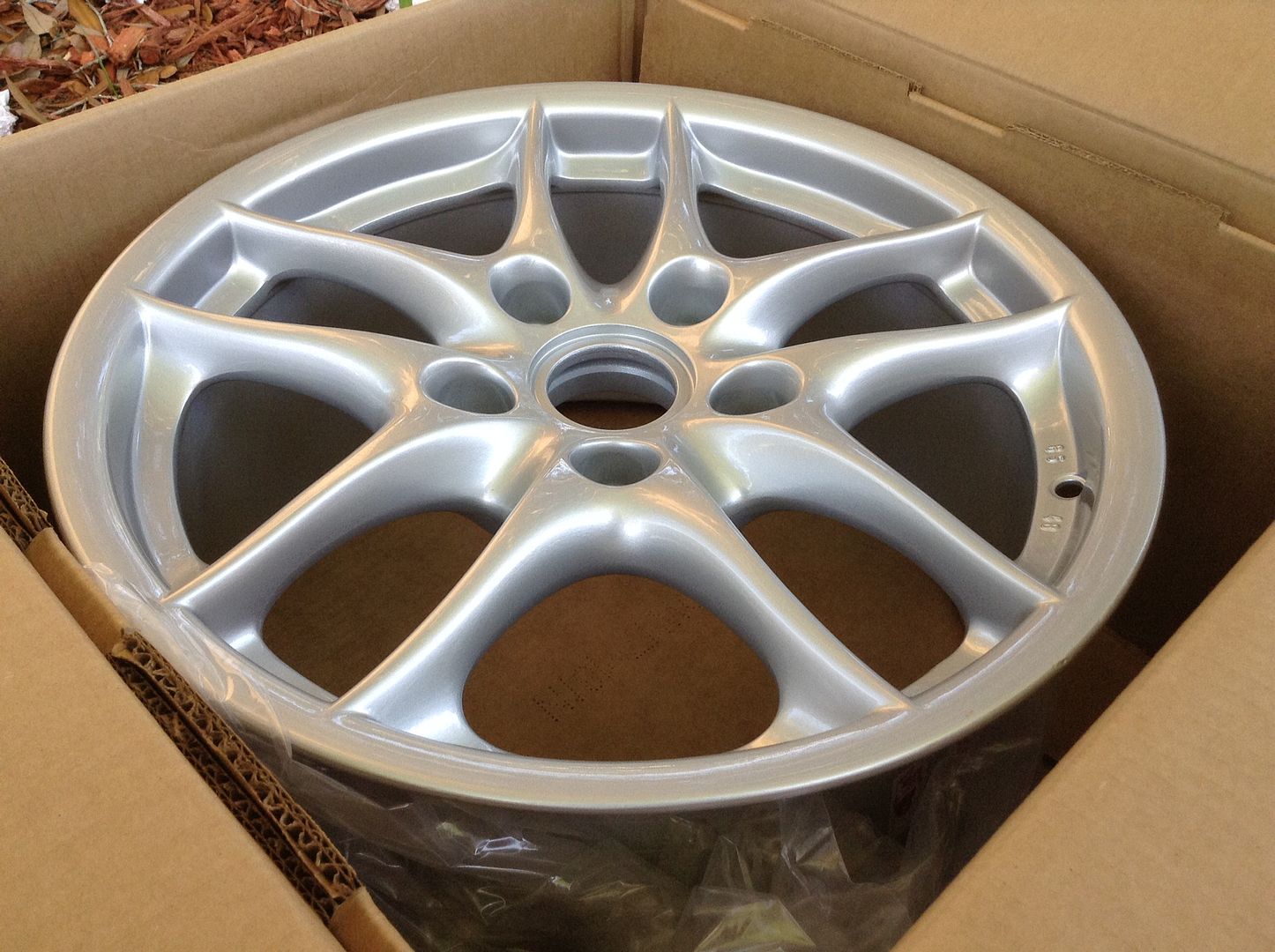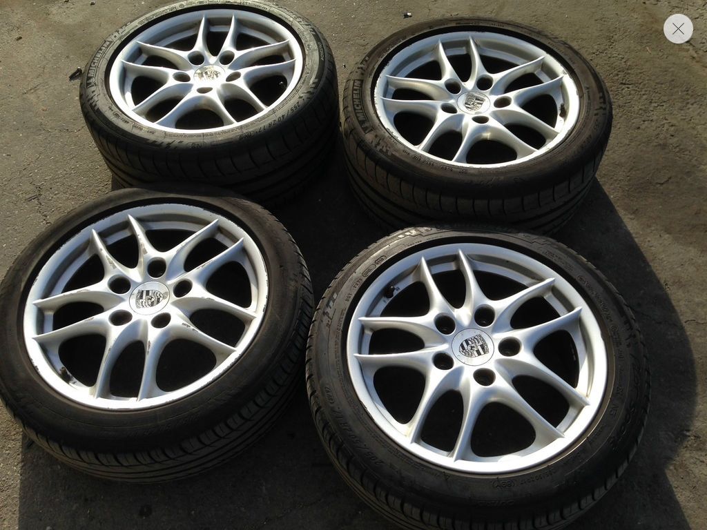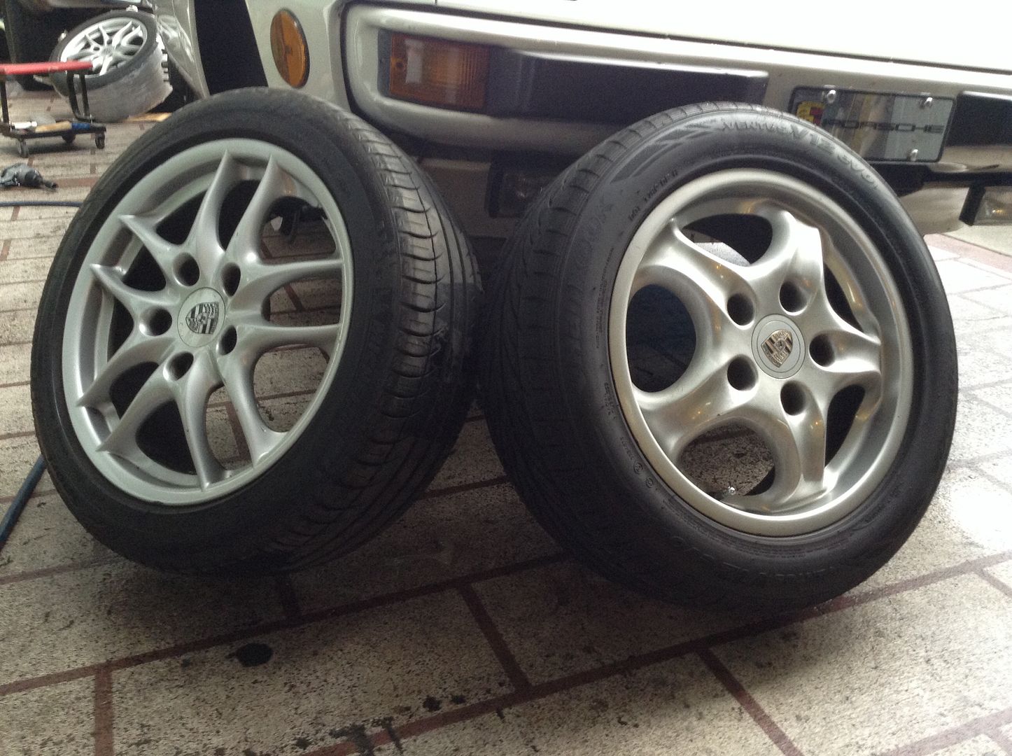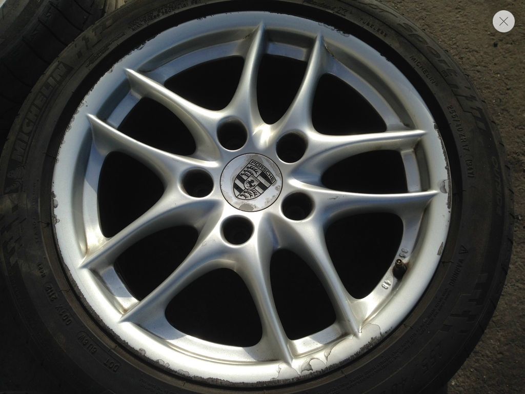 I'm due for new tires in the rear (245/45/16) but unfortunately no one in the US makes that size tire that are street legal anymore. So I thought, I've had these wheels for a while so why not upgrade. Searched around on the web. Found these on ebay, Boxter III wheels, used with Michelin tires. For about $1000, I know I prob overpaid especially in the condition they were in. Well I got them in. Excited. I took me to body to get them redone, they shipped it out to a wheel manufacturer to get them redone. I'm happy with the results. Let me know what u guys think!