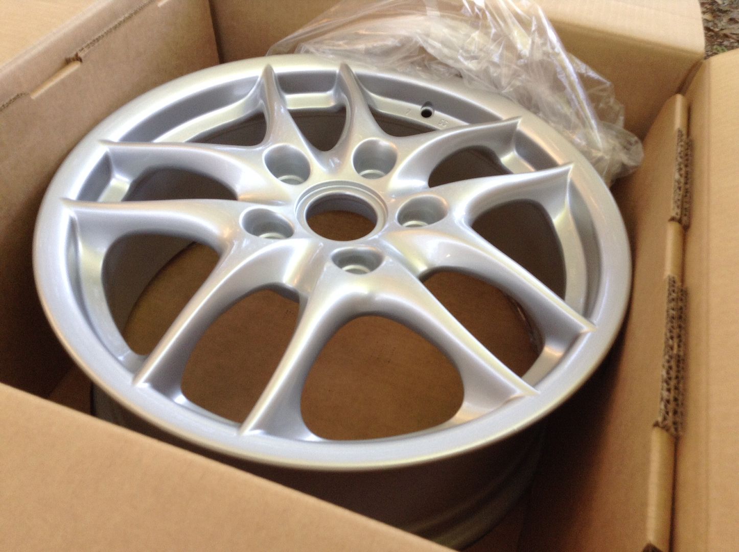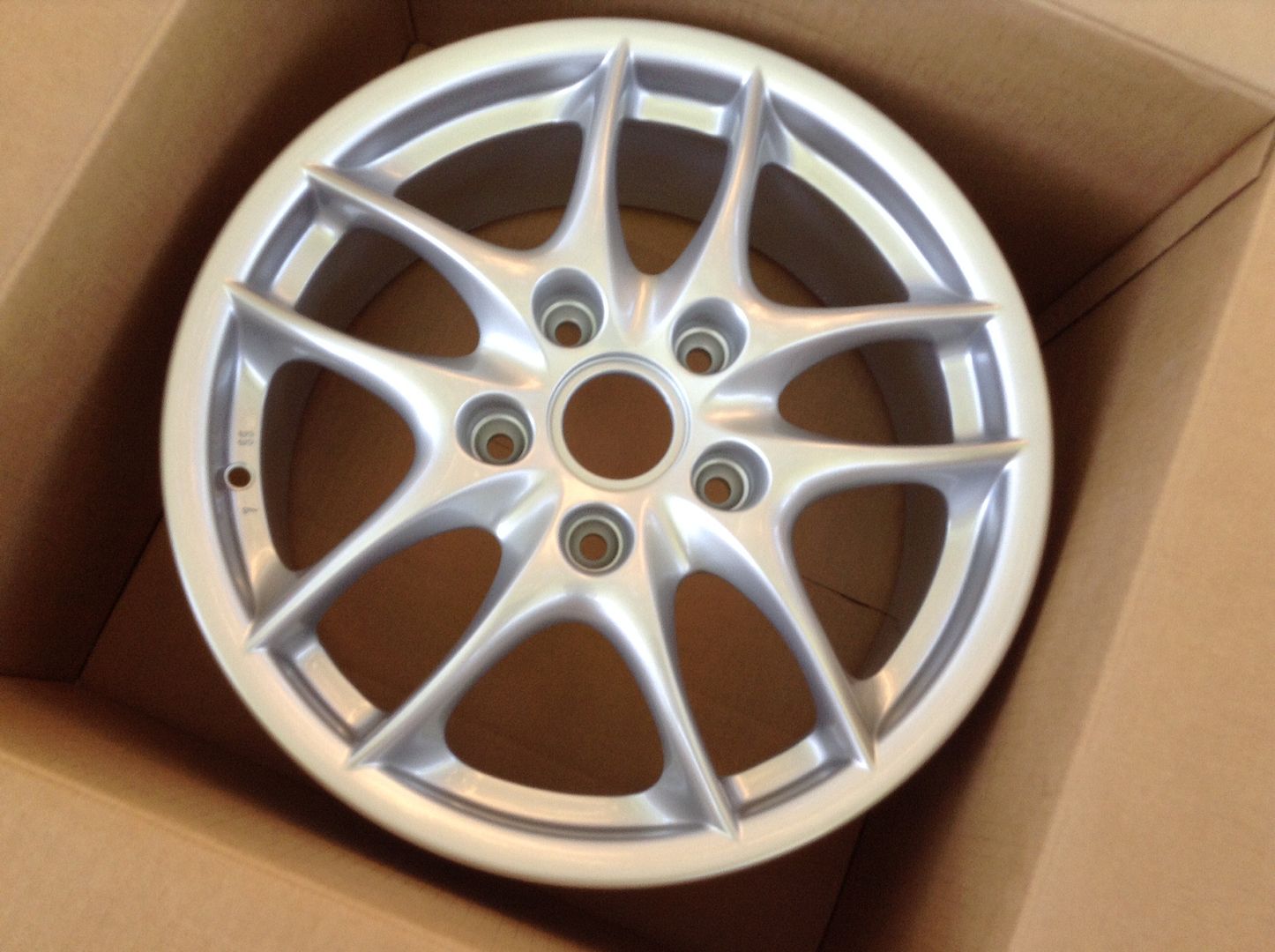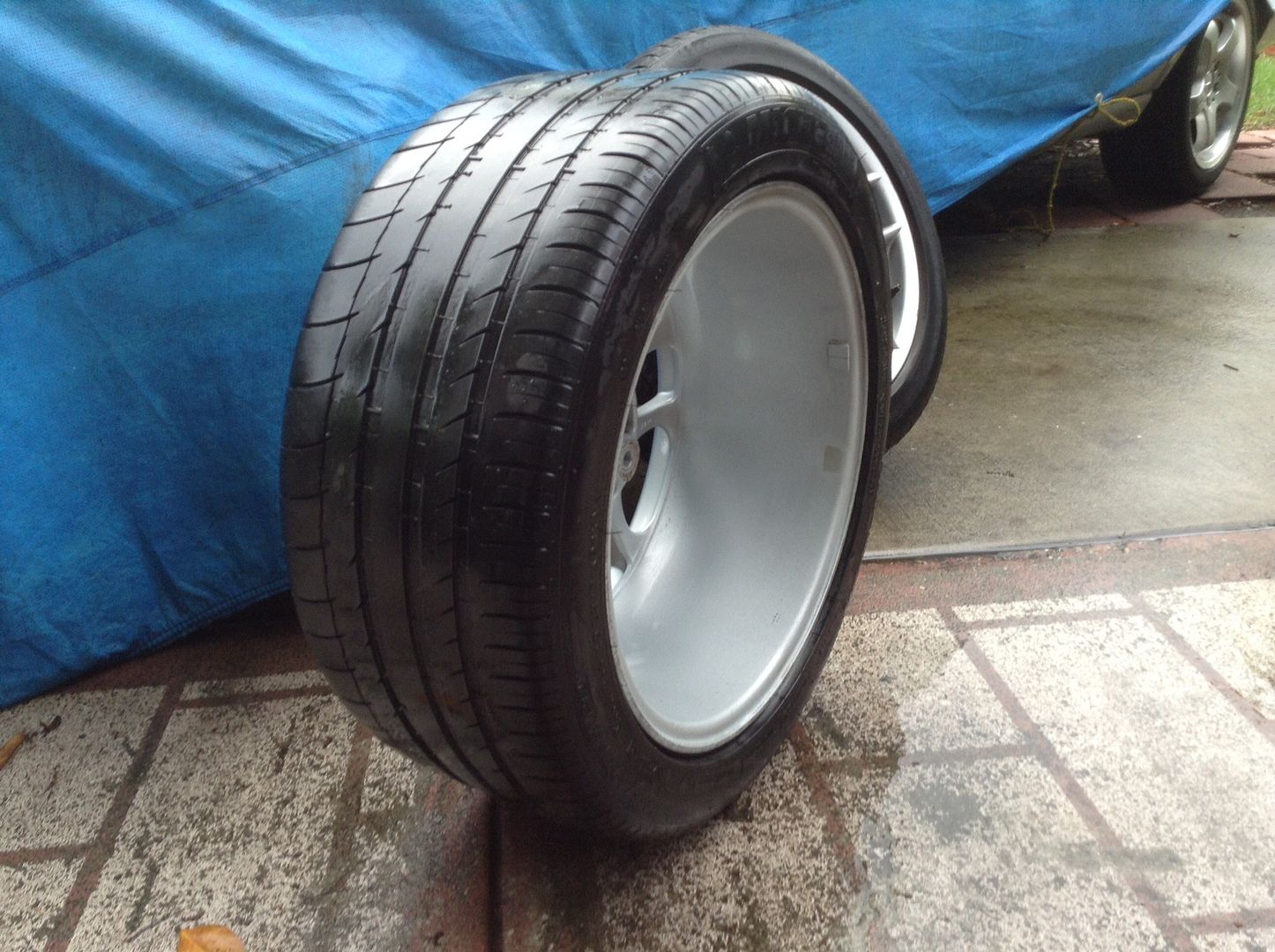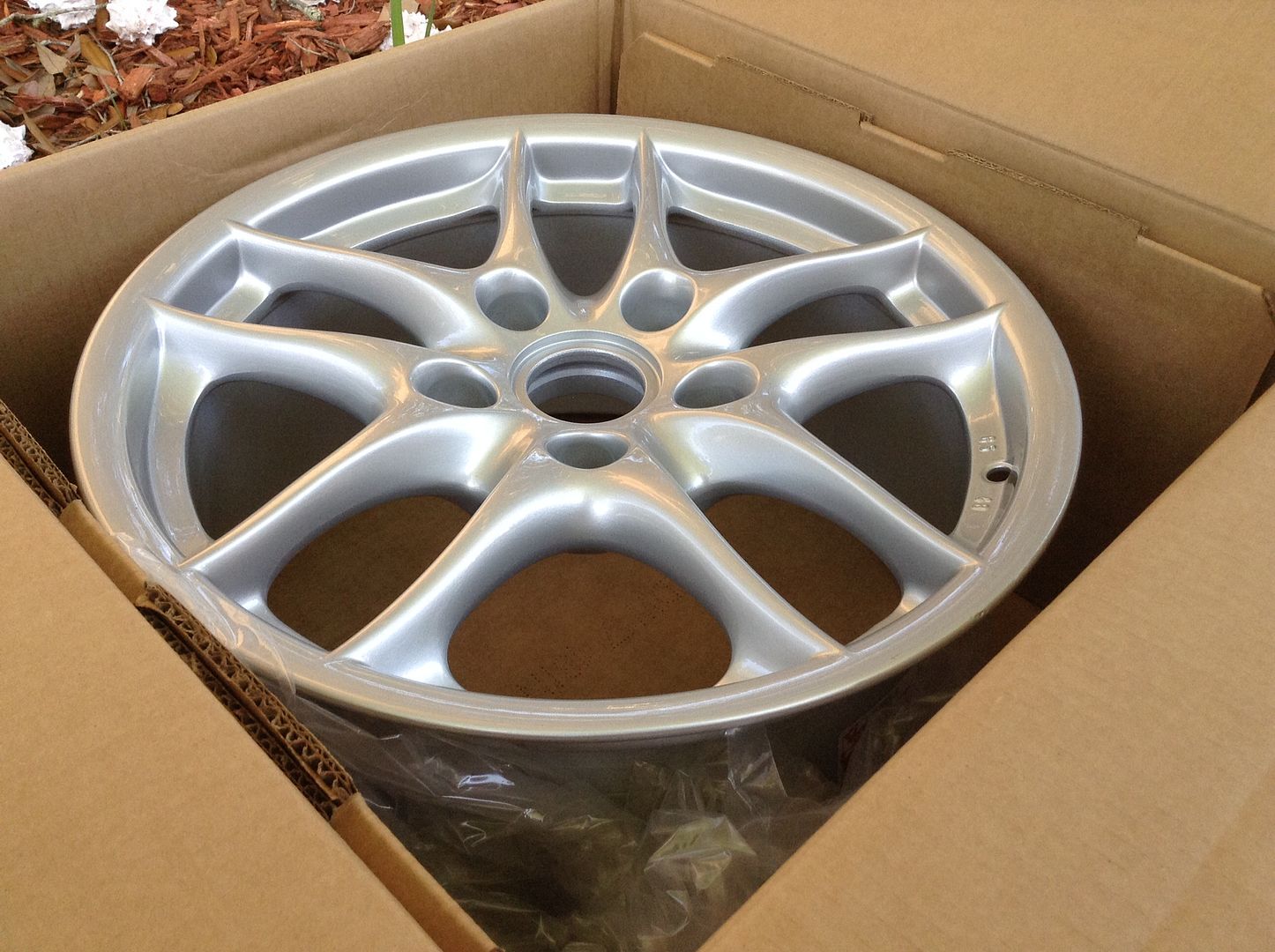 I'm due for new tires in the rear (245/45/16) but unfortunately no one in the US makes that size tire that are street legal anymore. So I thought, I've had these wheels for a while so why not upgrade. Searched around on the web. Found these on ebay, Boxter III wheels, used with Michelin tires. For about $1000, I know I prob overpaid especially in the condition they were in. Well I got them in. Excited. I took me to body to get them redone, they shipped it out to a wheel manufacturer to get them redone. I'm happy with the results. Let me know what u guys think!