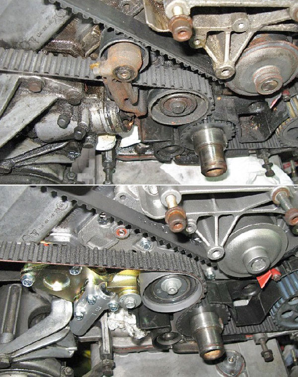 Go Porktensioner - it replaces the stock unit with one they would have used if they designed the motor today. Bottom shot, of course.