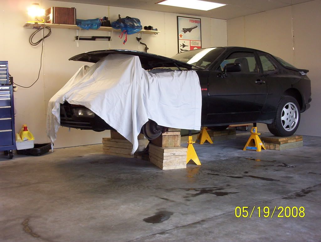 This is a 951 I picked up in the fall from a local PCA member. He imported it from Japan but never registered it for the road. I've taken care of all that, I was able to drive it a couple of times before the snow hit this winter. Since then I've been going through and catching up on some maintenance things. I had the belts and water pump replaced in the late fall. I've replaced all the cooling hoses, radiator, thermostat, fan switch, vacuum lines, cap, rotor, temp sensor on turbo, did the venturi delete, stripped the dead AC out. I'm about to drop the oil pan and replace the seal, as I put it back together I've got a manual steering setup to go in (thanks 944online), and also replacement intake hoses, boot, IC rubber connectors, lindsey fuel lines, plugs and oil filter. Last thing left to buy is shocks, going to do Konis all round.