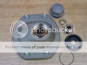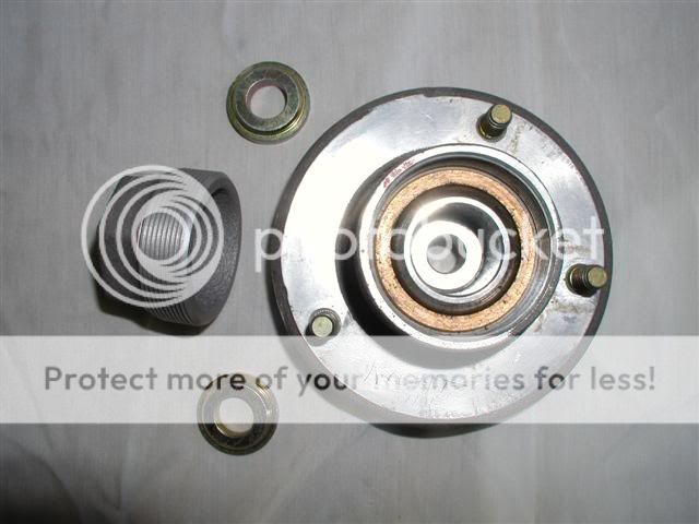 Below is an unassembled 964 Cup rear shock mount. The parts for the monoball are laid out left to right as they go top to bottom; I show the spring perch here for clarity since the small washer goes under it. The two tubular pieces on each side of the monoball telescope together within the monoball. The circlip is to retain the monoball into the plate and the studs are pressed into the plate. http://i541.photobucket.com/albums/g...964CupRear.jpg Below is a 964 RSR front shock mount. Note similarity to 993 RS mount Bill shows above which is a sealed version of the RSR below. http://i541.photobucket.com/albums/g...r/RSRFront.jpg |