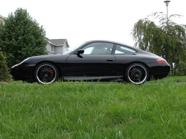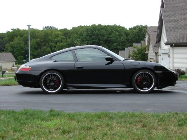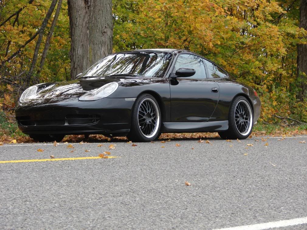The side skirts are the OE GT3 Aero Sides. My car didn't originally come with the Aero Kit option, but I sourced the applicable parts. Over the winter I have to respray the hood and fenders from track abuse and at that time I'll install the OE GT3 front bumper, rear spats and a GT2 type rear spoiler. As far as suspension, I am running H&R RSS Club Sport Coil Overs. They are set at right around 1.75in lower in the rear and almost 2in lower in the front. Most people do Bilstein PSS9s as coil overs on the 996, but they were a bit too soft on the dampening for the track. The H&Rs are firmer than the firmest PSS9 setting but I don't find them uncomfortable on the street. I have a set of GT3 adjustable sways that are going on it as well as some adjustable camber plates for the front and rear. Good luck with your search.