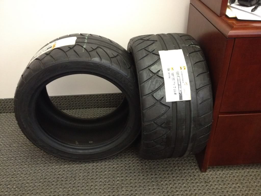 here are a few pics of the "test fit" of the rears I will post up some of the fronts tomorrow. I already started work on the rear. http://i690.photobucket.com/albums/v...5/e50d3495.jpg http://i690.photobucket.com/albums/v...5/ec88584c.jpg here is the difference in the front tires old to new... not that much :lol: http://i690.photobucket.com/albums/v...5/a3893d9b.jpg http://i690.photobucket.com/albums/v...5/c73a2b83.jpg Got the fronts on... they stick out some. I wonder what the handling affect will be with the new tires? kinda excited to drive it. again going from original equipment of 195 to 285 makes a big difference. The weight difference is ~38 pounds per rim/tire per side on the fronts. I will have to wait and see for the backs when I can pull them. feel free to give me input but know the car is very far from done as of today. please note the side skirts are not on the car. http://i690.photobucket.com/albums/v...5/9589efab.jpg http://i690.photobucket.com/albums/v...5/7d10c653.jpg http://i690.photobucket.com/albums/v...5/22cbb804.jpg http://i690.photobucket.com/albums/v...5/6d166f81.jpg I've been in the lab almost every day. This is the smaller of the two bays, easier to heat. http://i690.photobucket.com/albums/v...5/GOPR0156.jpg http://i690.photobucket.com/albums/v...5/GOPR0169.jpg A lot left to do. Very excited. |