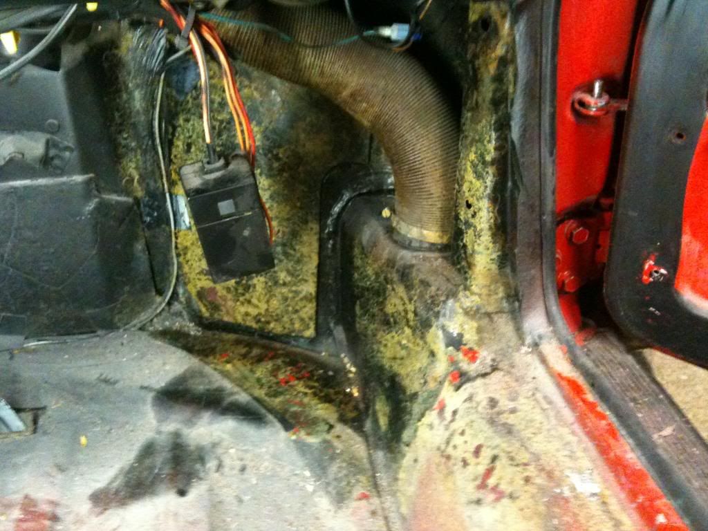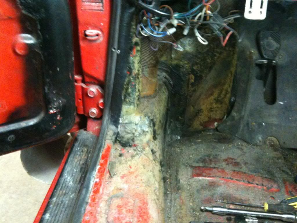 Cleaning it up for the cage/bracing to be put in. I had to remove the back seat; it will be going back in around the bracing.