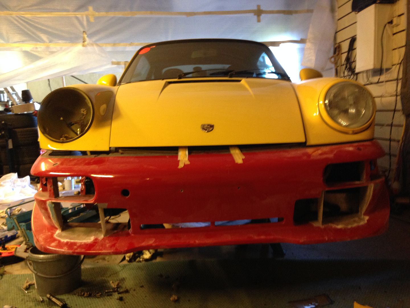 Before installing a front center mount oil cooler, I thought I could try move my 2 fender mounted coolers in better position, and also open up for more airflow. I bought a used front fender, that also will provide more downforce, as a core. I have been inspired of the open ducting that the 993 GT2 evo front fender has. ![]() This is my starting point ![]() Then I started to cut out opening :-) ![]() Then I started to section out the openings... ![]() Then a little trial fit...