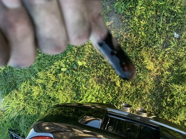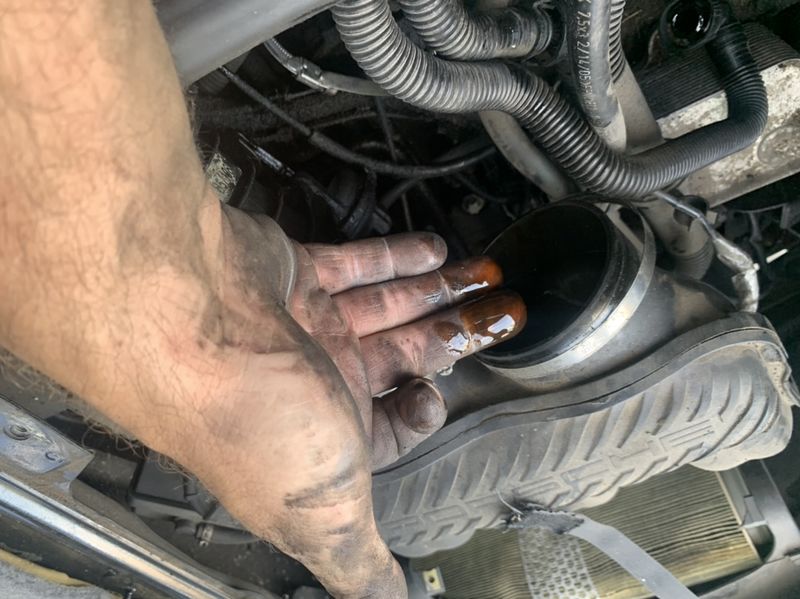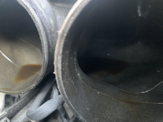 First test, cold. Pressurized the tank to 13-14psi, after a few min it dropped to 11-12 psi and held that for 10 + minutes. I pulled the hoses from the air/oil separator, capped the hose to the intake and fired it up. Less smoke at first, but it still smoked and when I would rev it the smoke got much worse like before. I connected the hoses for the separator and fired it back up. It continued to smoke. I pulled the oil fill cap, and it clearly had vacuum against it because it took effort to remove. After it was off the car stumbled and stalled. Fired it back up and pulled the cap again, I could put my hand on the tube before it would stall to keep it running. Pulled the seperator hose, plugged the line and fired it up again. I let it idle untill it got to operating temp, and it stayed there (175-180 deg). I pulled the cap and pressure tested the coolant system again with identical results. The V bands before the mufflers clearly have some oil soakage. With it idling and the engine cover off, smokes was coming up from the compartment. I ordered a new seperator, and I plan to do a compression/leak down test. I just wonder if the catalytic converters and mufflers are oil soaked causing this to continue. I’ll include some pictures of my finger tips after wiping the exhaust tips. |