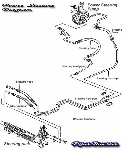 The picture was taken at the driver's side rear of the engine, actually beside the transmission (clutch slave cylinder). The tube extends to the rear of the car. The power steering pump is on the passenger's side top, front of the engine.