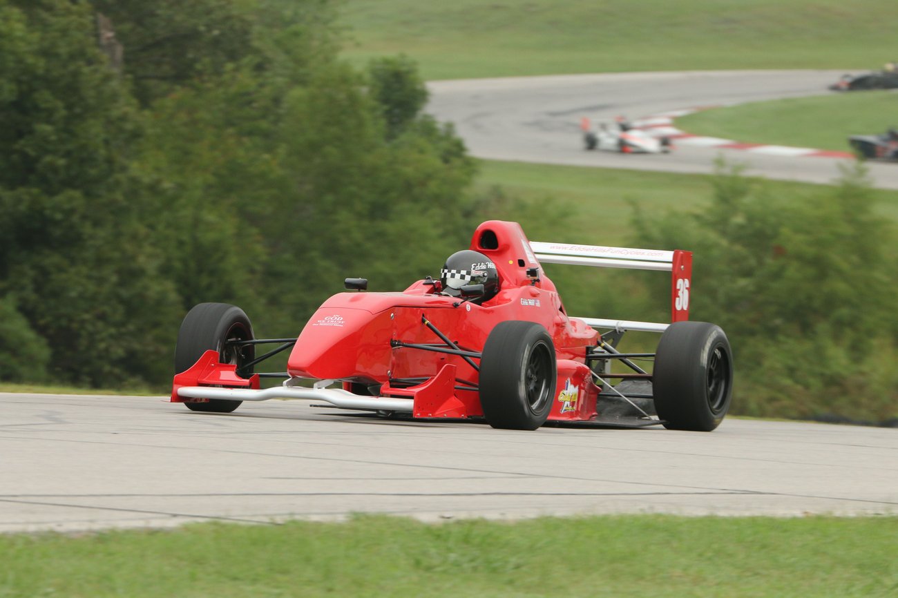 84 year old Eddie Hill winning in his Formula B car at Hallet racing circuit.