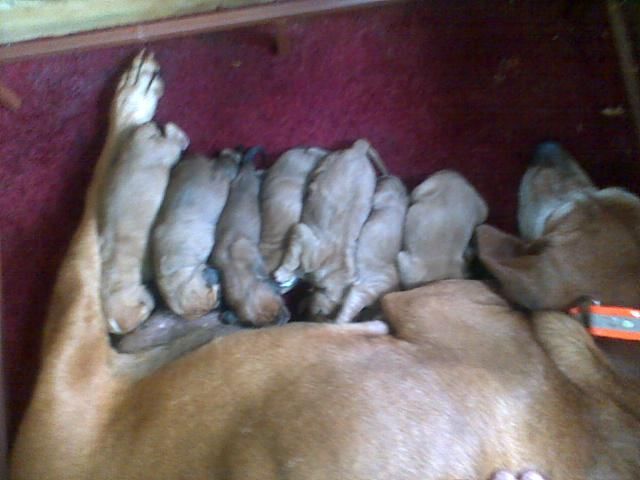 My wife just received this texted photo from the kennel in Ohio where we got Ruby 13 years ago. Ruby's dad, Razor, was also the father of the stud to this litter, which would make Ruby the great aunt! We're crossing our fingers that there will be another coonhound bawl in the house sometime this fall! Ohio is a long way to go for a dog, but we just love this breed and to have a direct bloodline relation to Ruby would mean a lot to us. http://i906.photobucket.com/albums/a...psd4600275.jpg |