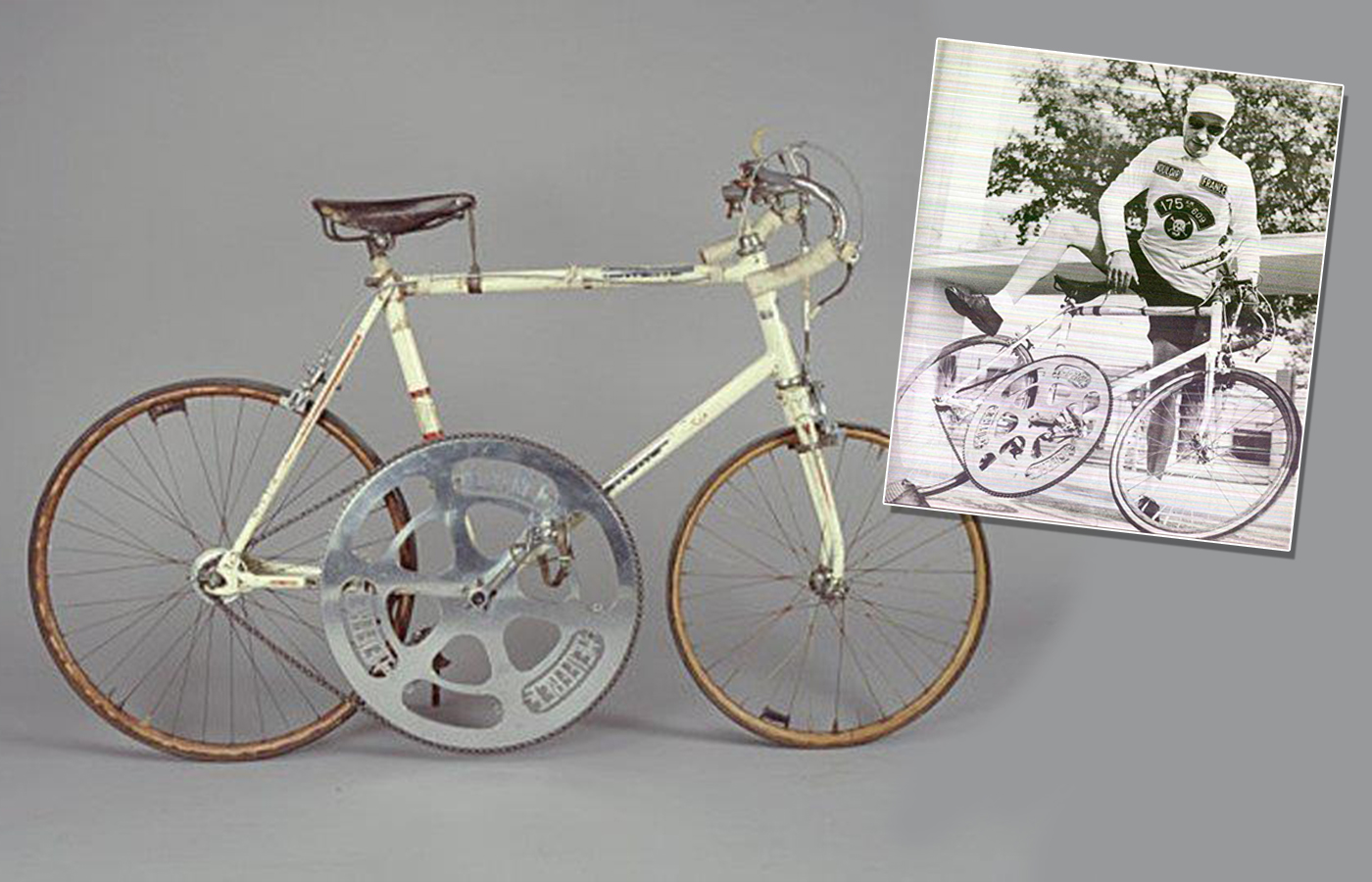 curt ^^ You do pick some good ones. I'm digging the styln' hairnet..... and check out that derailleurs bobbling tensioner. The crank resembles a Mavic starfish, so just a hunch is that a Mavic derailleur?