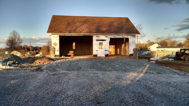 And just gravel driveway right now. Waiting for spring to do the exterior concrete work.