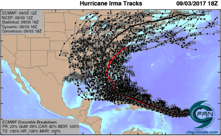 Most are saying we don't know what she is going to do. Or where she is going to go. I understand that hurricanes are not 100% predictable......but...... I don't understand why at this point (especially after what happened with Harvey) the media is not providing more warnings and general instruction to those who could be in her path? Isn't THIS the time to do stuff to prepare? 1. get a plan together on evacuation 2. gather your belongings together or at least make a list and know where it all is. 3. make plans for your family 4. check on your friends and your aging neighbors 5. service your generators and get ready to fill gas cans 6. stock up on supplies NOW...not later in the week when everyone else is and suppliers are scrambling to restock shelves Here's the latest.... ![]() Yes, it's Labor Day weekend but I've got my mind on a Cat 4 hurricane coming this way...as well as "other stuff"....