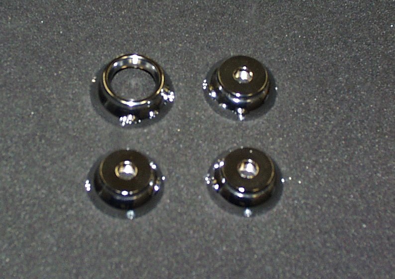 Perfect Porsche 356 switch grommets (covers). It are 3 grommets for light switch, wiper switch, etc and 1 grommet for the ingition switch. This package sells for $150.00 PT