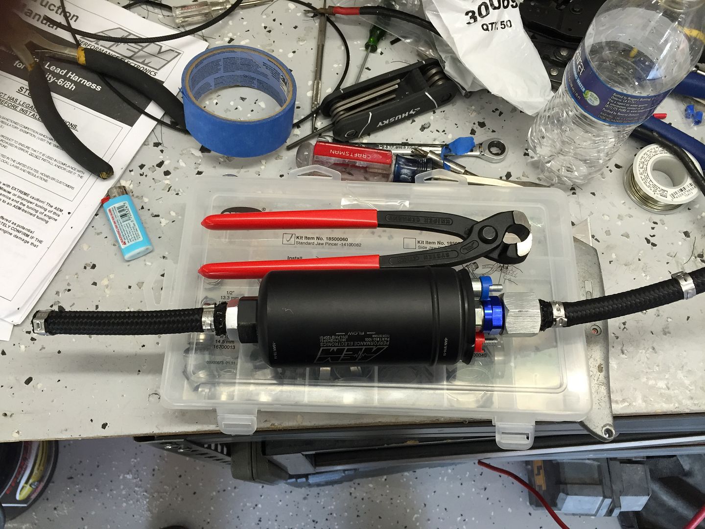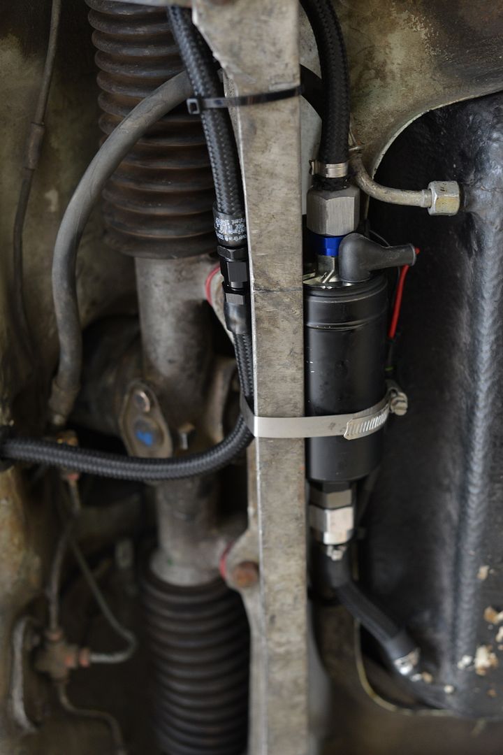 While the wiring was moving, I also worked on the fuel. The car was setup previously with Weber's and had a low pressure fuel pump installed. ![]() I used an AEM unit to replace it. ![]() ![]() ![]()