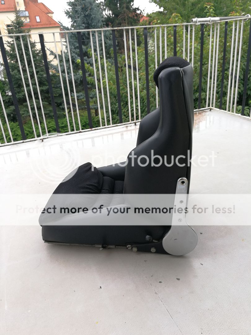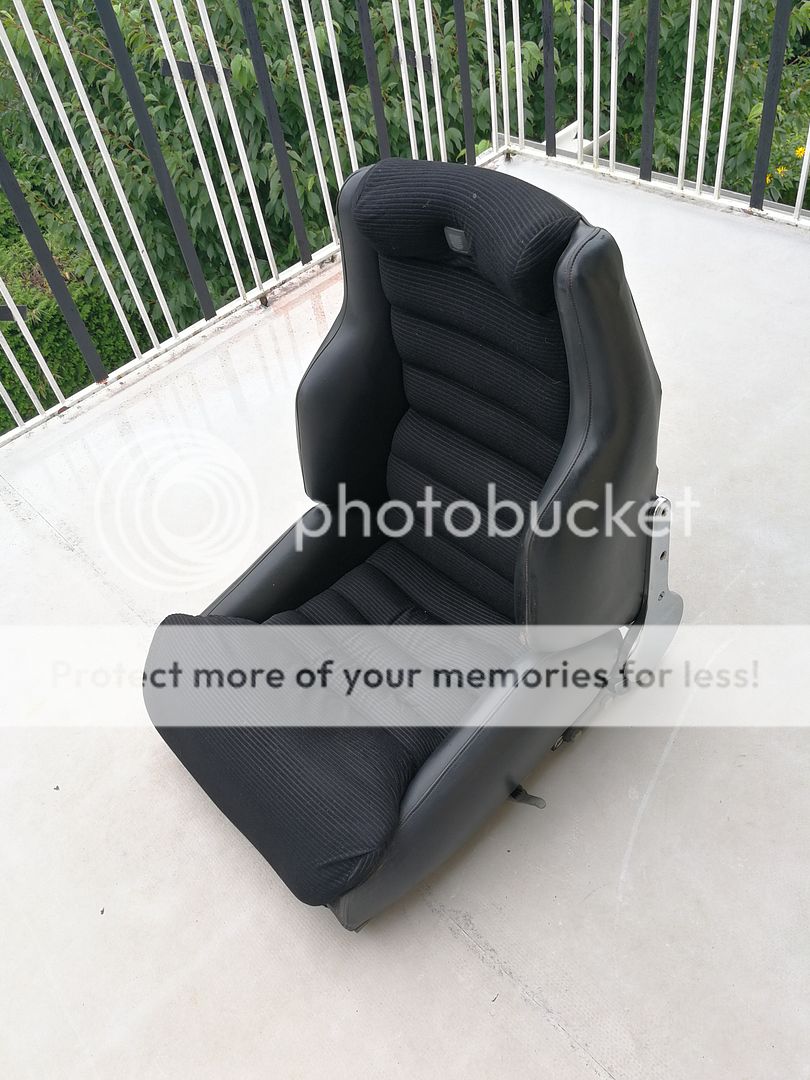 The interior photo is also a scheel, but an earlier version of this seat with a fixed headrest that is mounted on a U shaped bracket. The one for sale has the headrest guides in the back of the seatback. It has the rare scheel 'lightweight' GT sliders, but it does have a recaro peanut headrest.