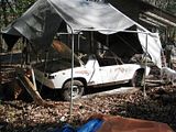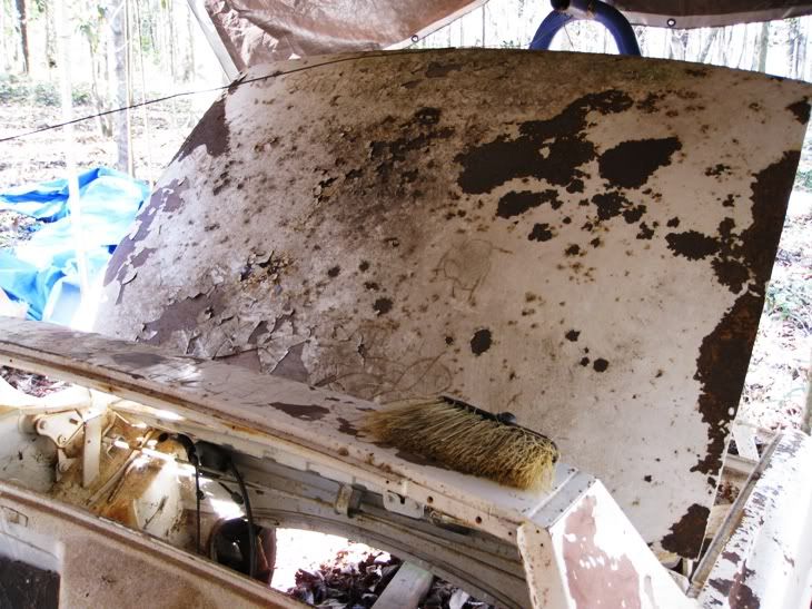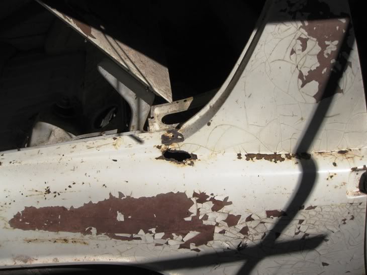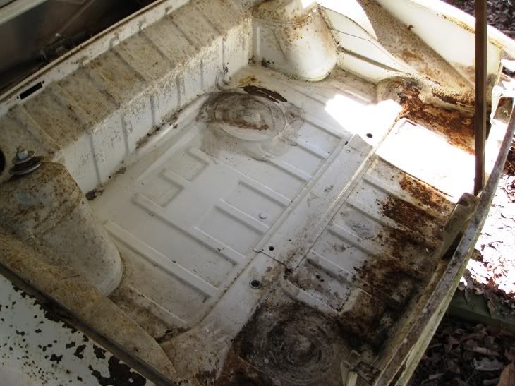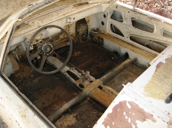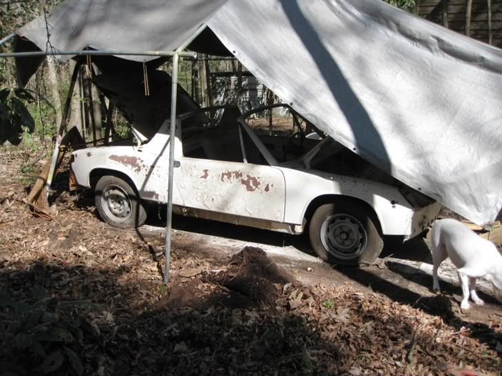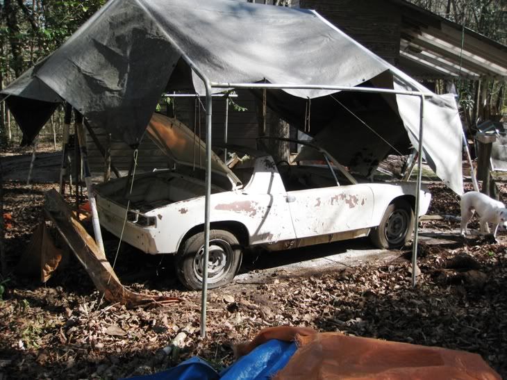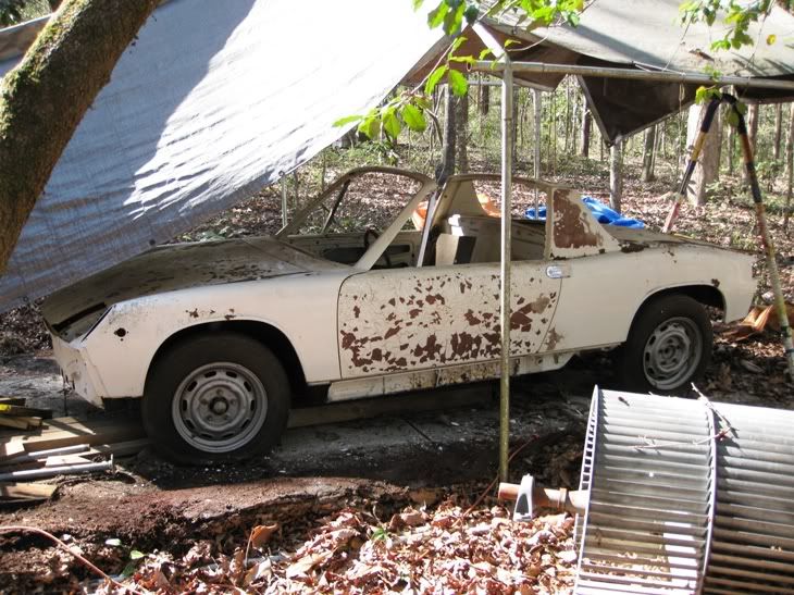 before i was even born, dad was getting a few little rust holes in the (i want to say driver's side) patched, when the retard working on it cut a fuel line and lit the car on fire, about half the interior was torched, the fiberglass roof lid was destroyed, the dash, driver's seat, gauges, and a couple other items were screwed, and the wiring harness was effectively shot but, most horribly, the weber carbs were destroyed by the corrosive properties of the dry extinguishing agent that they used to put it out this, coupled with a person of dubious ancestry that "borrowed" a couple things and then left town made the car into a shell so, dad mothballed it over the years, he's picked up a part or two, nothing big, and certainly hasn't found a new engine however, two weeks ago, i saw an ad on craigslist for a 914-6 engine for $1000, i immediately called my dad and started talking to him to try and get him interested, happily he was i went and met with the guy, and started talking to him to get a feel for the engine, find out the condition, when it had last been ran, how many miles, whatever. while i was doing this, dad was calling a buddy at a local Porsche rebuilder/restorer and mechanic we found out that my dad's friend, had all the parts necessary to rebuild dad's engine (he still had the case, everything else, the cylinders, heads, intake, etc all got "borrowed"), so we decided to go that route as we'd have the engine with dad's serial number on it still so i went out to help dad dig everything out and see what exactly we have, and what we'll need this is gonna be fun ![]() there are a couple little rust holes in here, as well as one or two in the trunk, other than the one that's about two inches long the car is straight and has nothing more than some surface rust machine make it go VROOM goes here